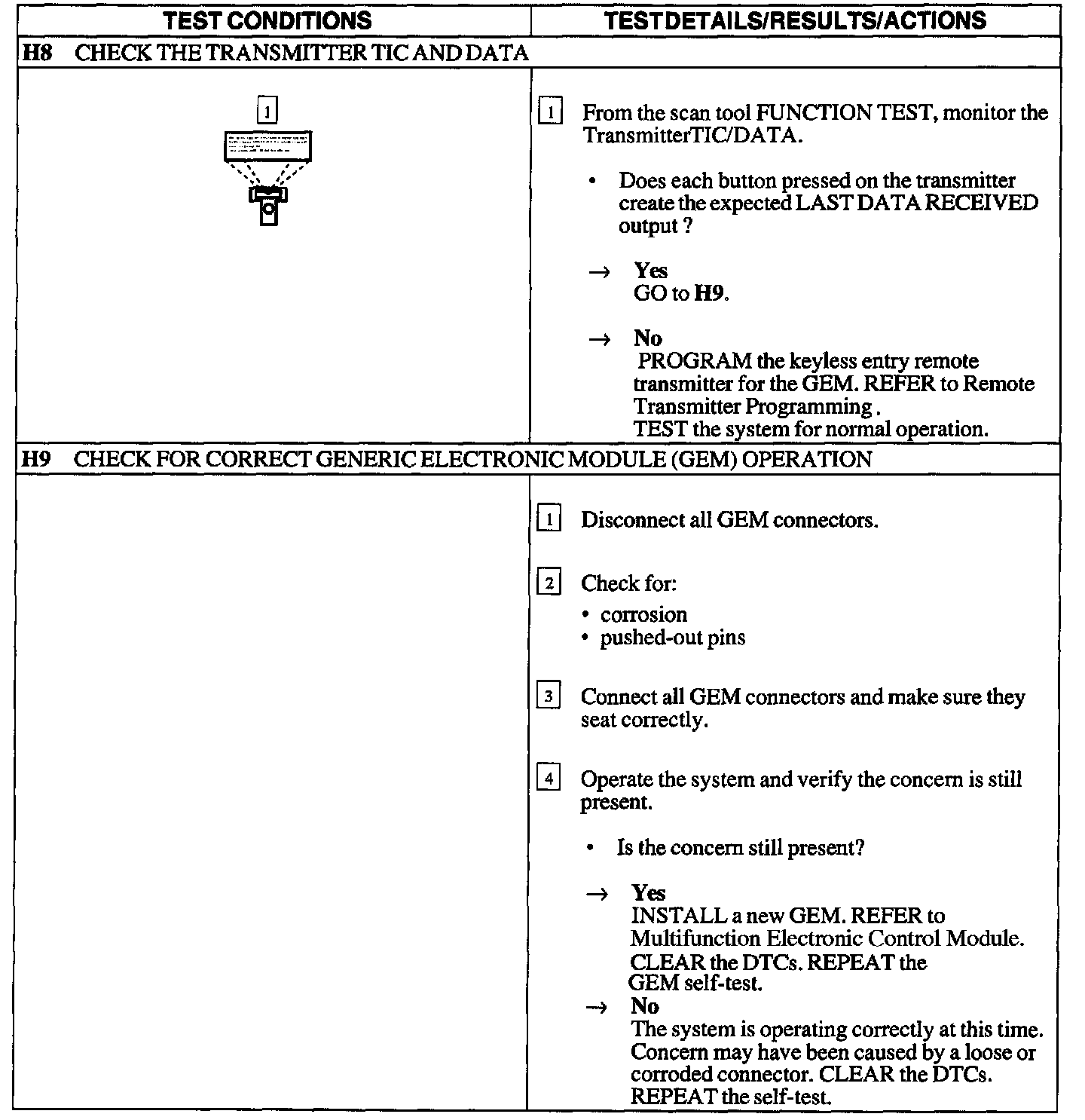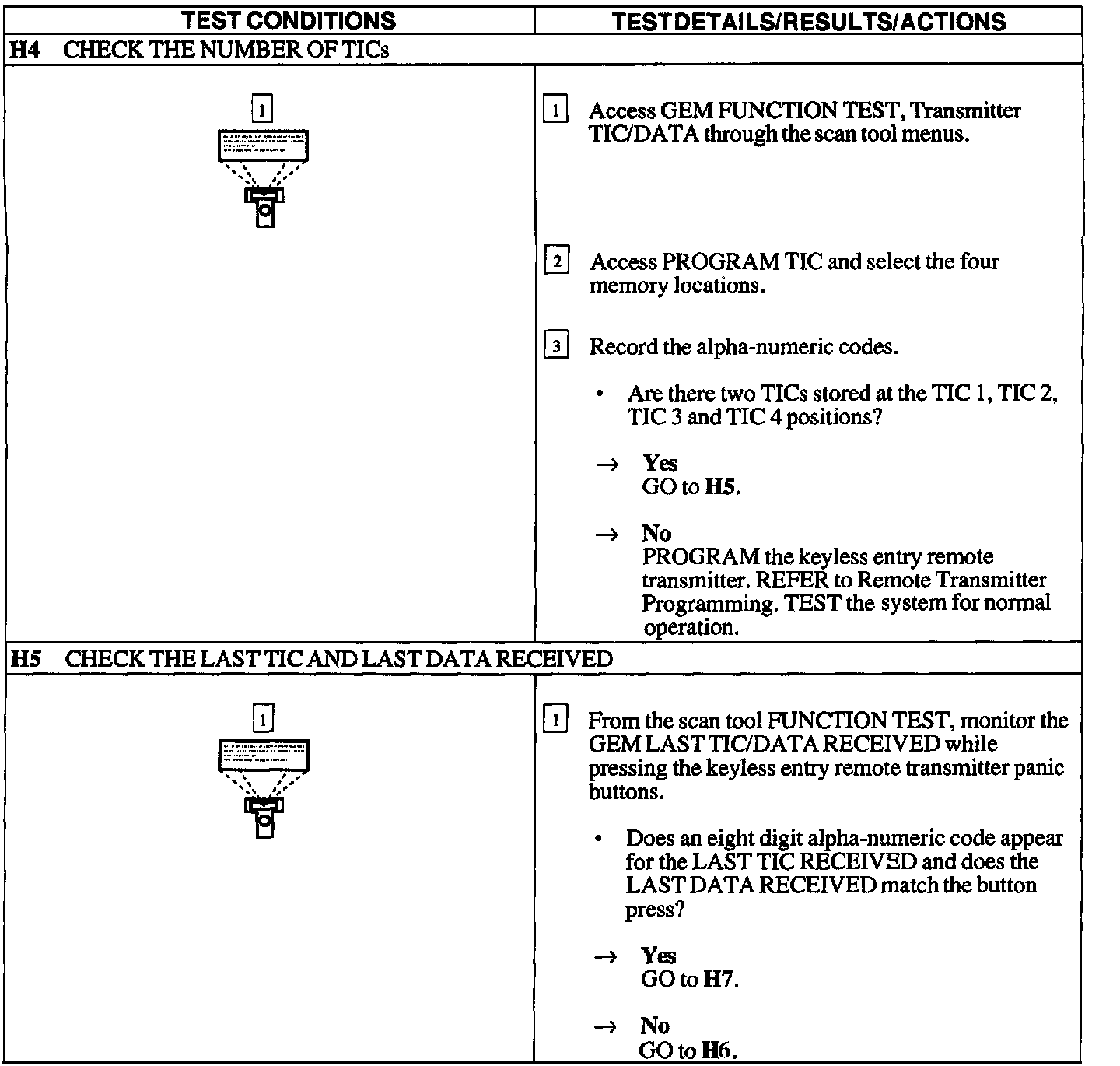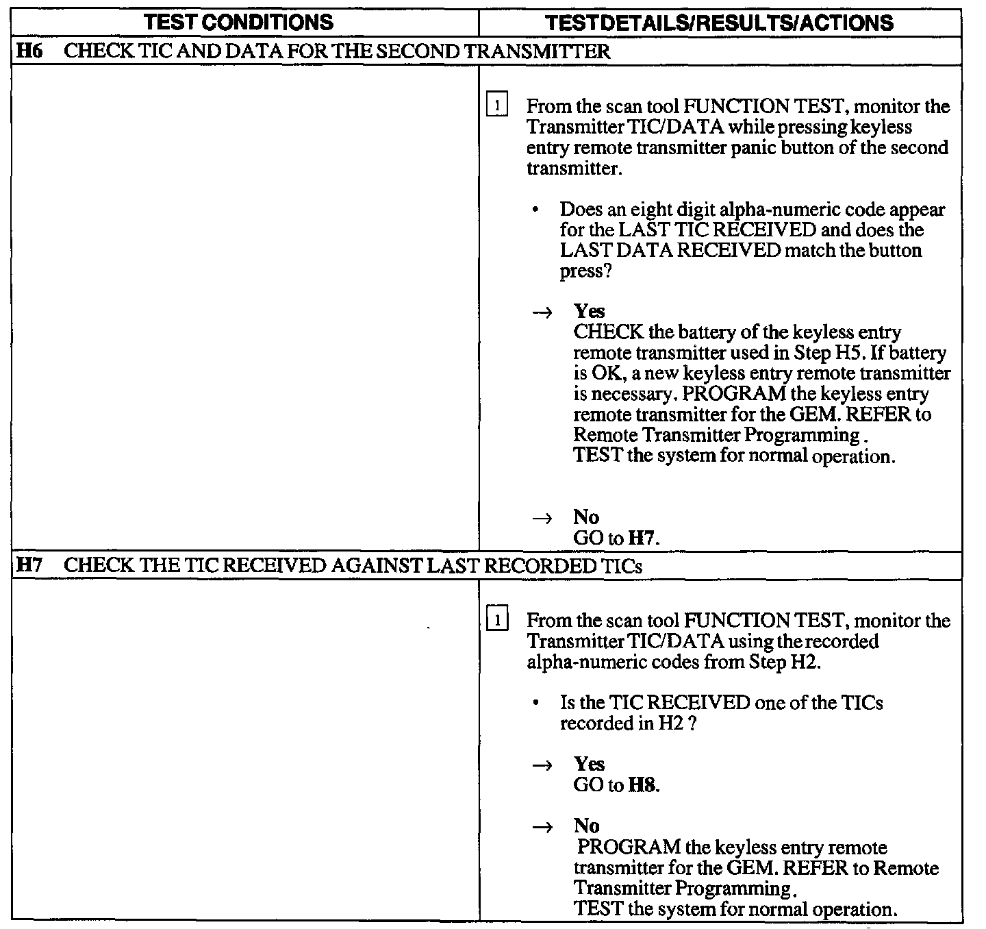 Test H: Panic Feature Is Inoperative Using The Keyless Entry Remote Transmitter