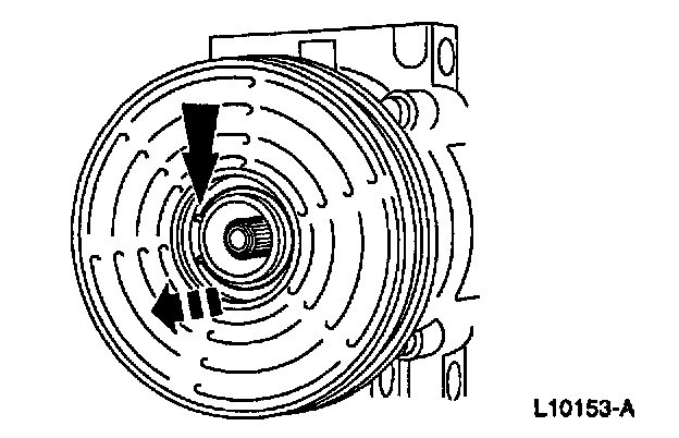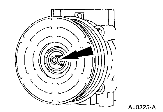 NOTE: The A/C clutch pulley is a tight fit on the A/C compressor head; it must be correctly aligned during installation.