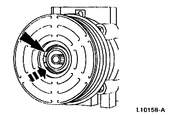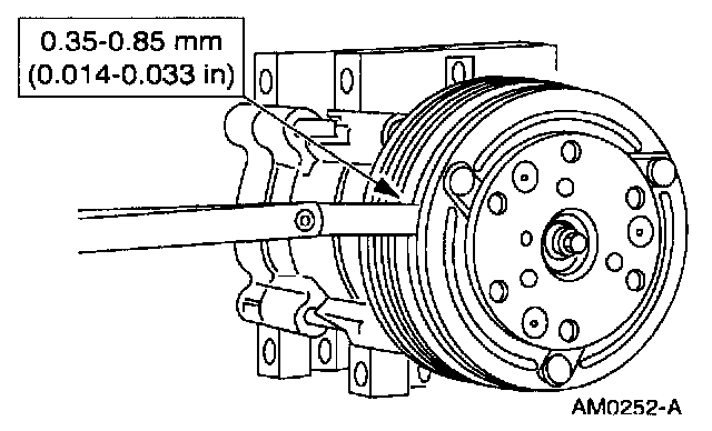 8. Measure and adjust the clutch air gap by removing or adding A/C clutch hub spacers.