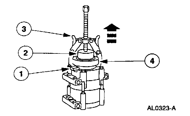4. Use the 2-Jaw Puller to install the A/C clutch field coil until bottomed completely against the A/C compressor.
