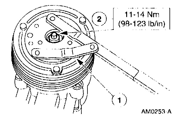 1. Hold the A/C Clutch hub with the Compressor Clutch holding tool.