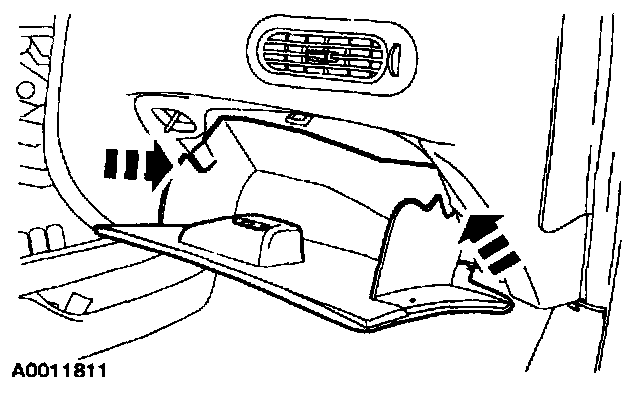 3. Open the glove compartment. Pressing the tabs inward, lower the glove compartment towards the floor.