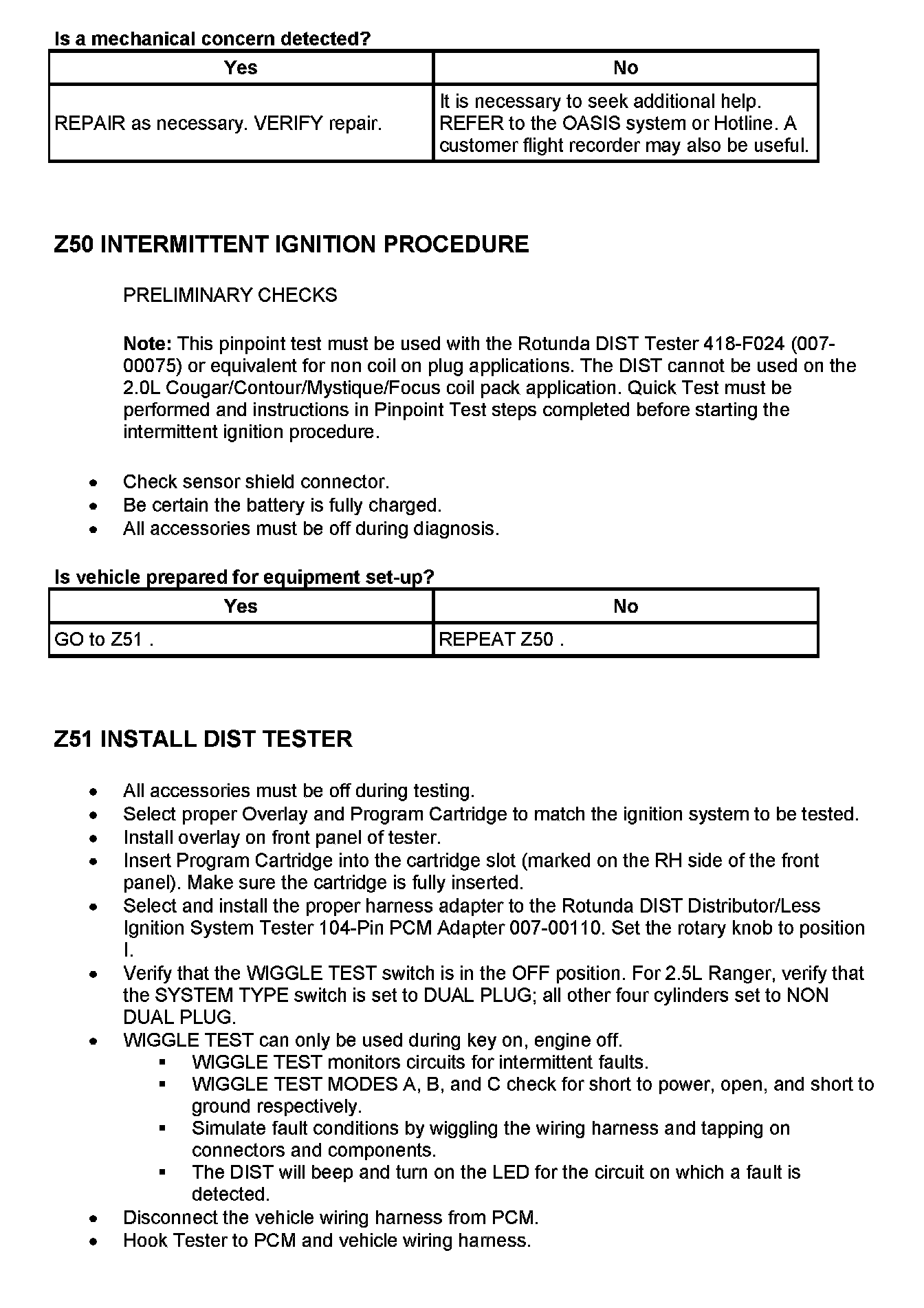 This chart is used to determine which test to run for the suspect circuit. Corresponding PIDs to each circuit are listed. Some circuits do not have an associated PID and will be measured with a digital multimeter. If the vehicle has a coil pack system with no start, perform the ignition test with the distributorless ignition system tester. Do not use the DIST for coil on plug applications.
