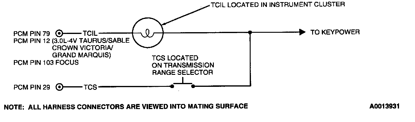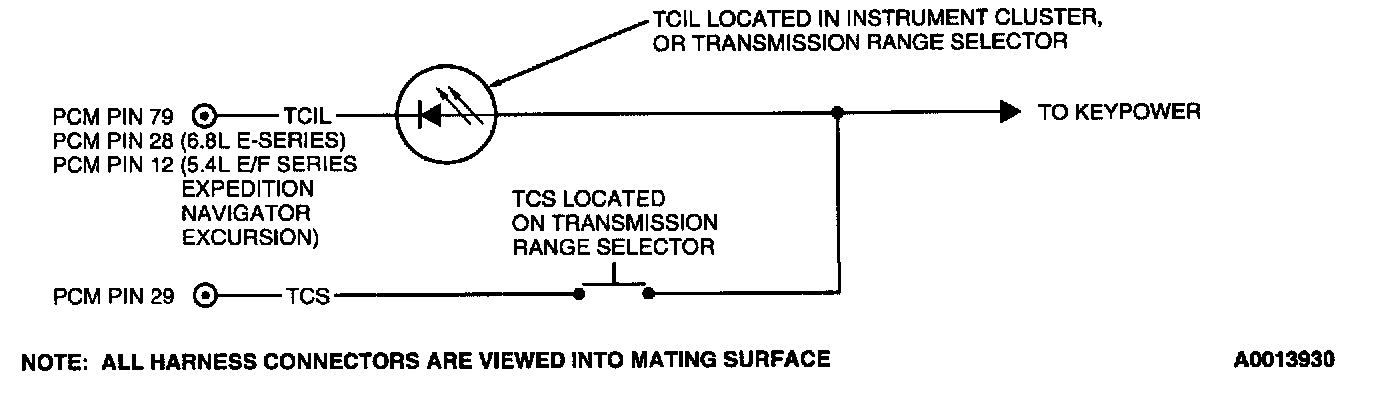 - Harness circuits: Transmission Control Indicator Lamp (TCIL) and Transmission Control Switch (TCS)