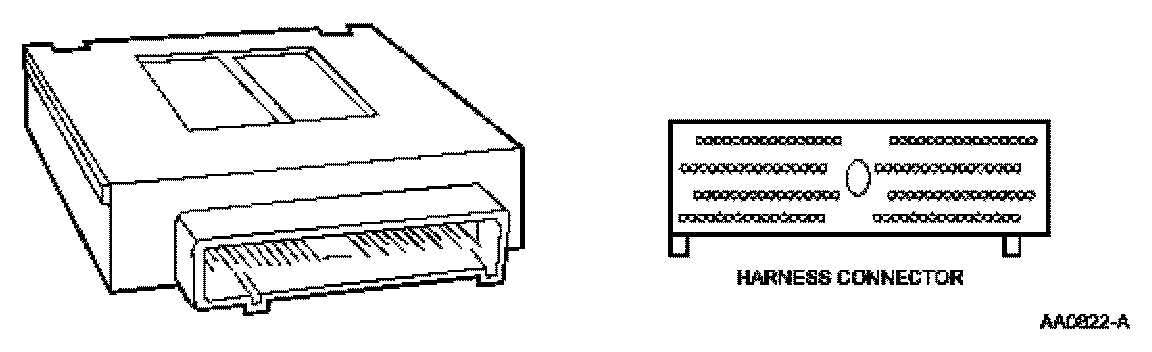 The center of the Electronic EC system is a microprocessor called the powertrain control module (PCM). LS6/LS8 applications will use a new 150-pin PCM (Figure 18). This PCM will also have three separate electrical harness connectors. All other applications will continue to use the standard 104-pin PCM (Figure 17). The PCM receives input from sensors and other electronic components (switches, relays). Based on information received and programmed into its memory, the PCM generates output signals to control various relays, solenoids and actuators.
