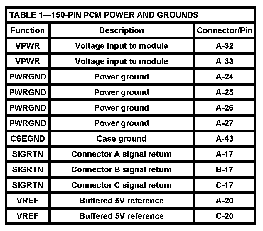 Table 1 - 150-PIN PCM POWER AND GROUNDS: