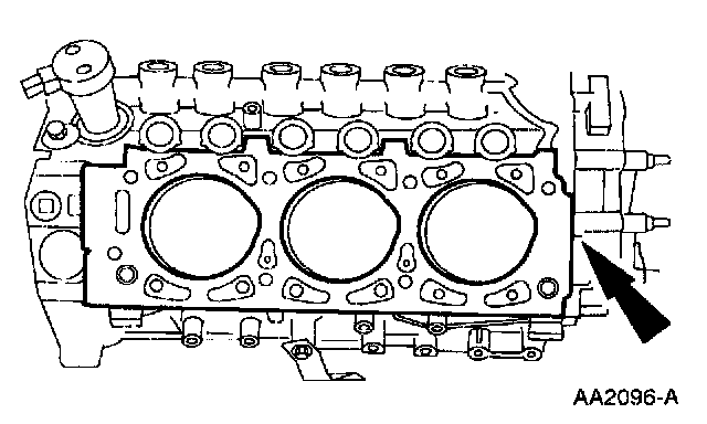 Note: The "V" notch in the cylinder head gasket faces the front of the engine.