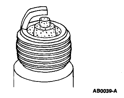 5. Inspect for carbon fouling. Look for black, dry, fluffy carbon deposits on insulator tips, exposed shell surfaces and electrodes, caused by a spark plug with an incorrect heat range, dirty air cleaner, too rich a fuel mixture or excessive idling.