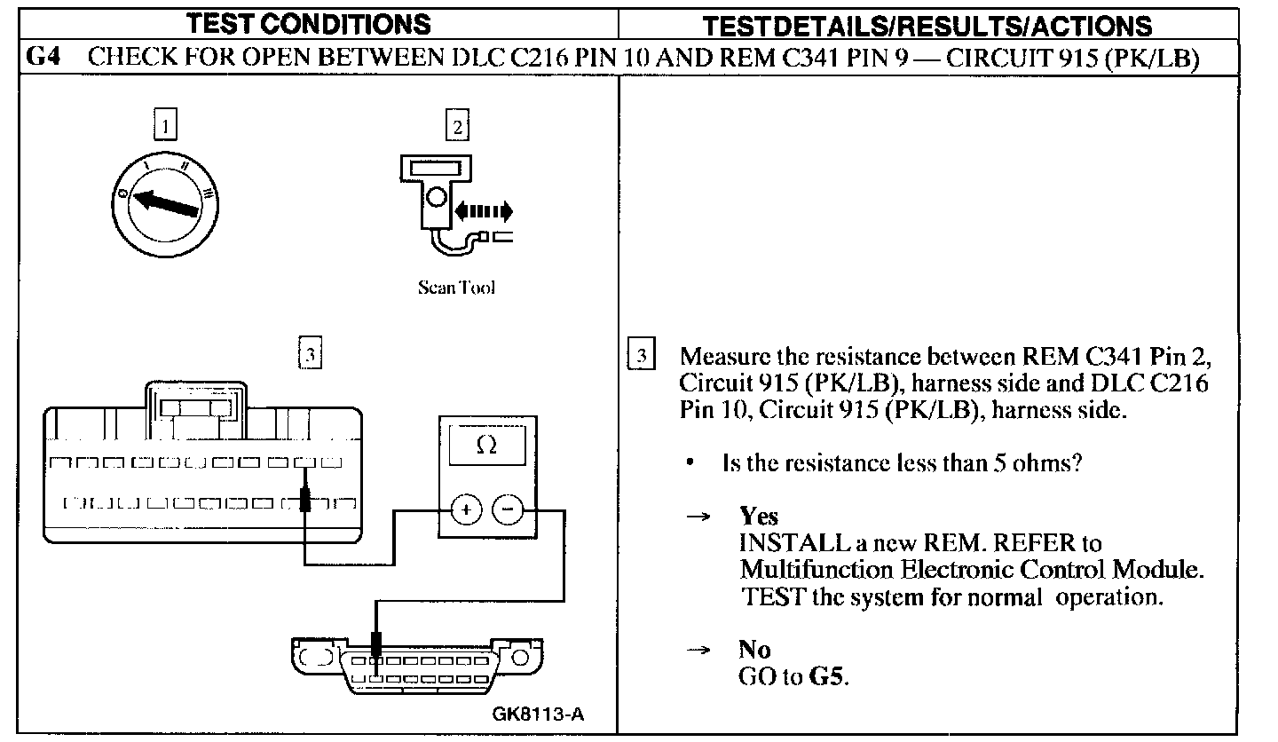 Test G: REM Module Does Not Respond to the Scan Tool