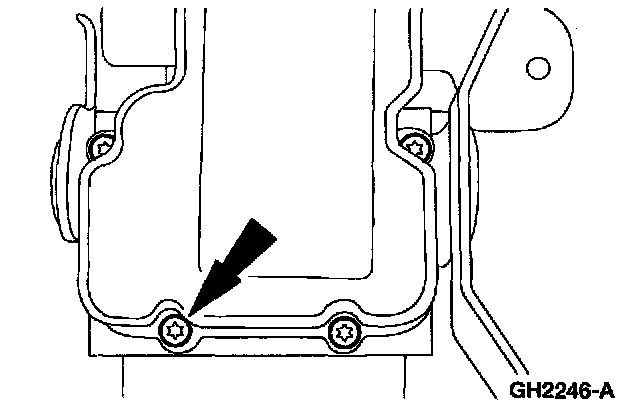 6. Lift the bracket hooks from the frame and lower the HCU to access the anti-lock brake module.