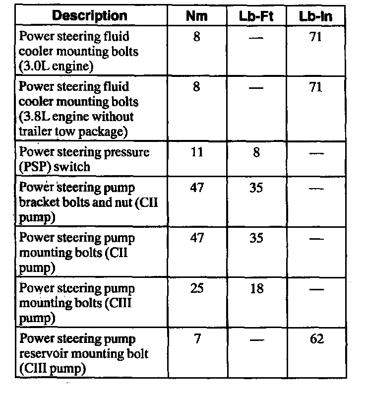 Torque Specifications