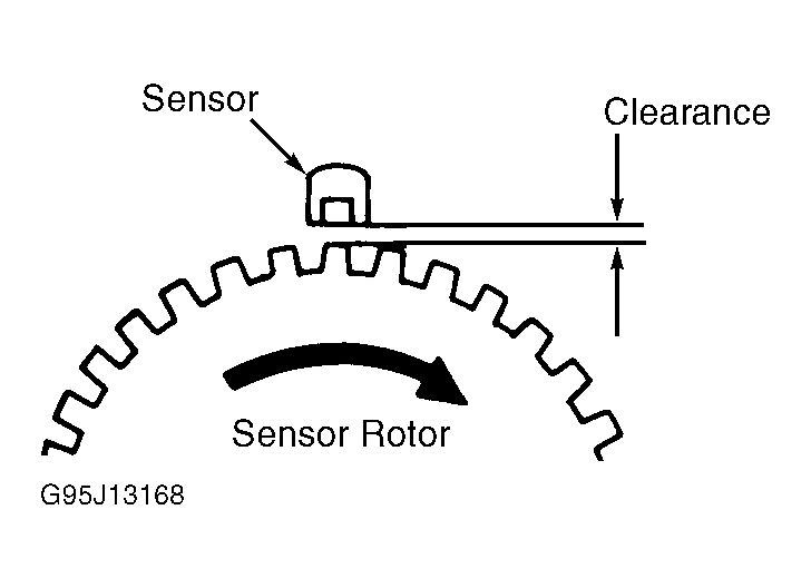 Remove wheel. Using a feeler gauge, check clearance between sensor rotor and pick-up unit. Clearance should be .030-.050" (.76-1.27 mm). See Fig 1 . If clearance is not within specification or sensor is damaged, replace sensor.