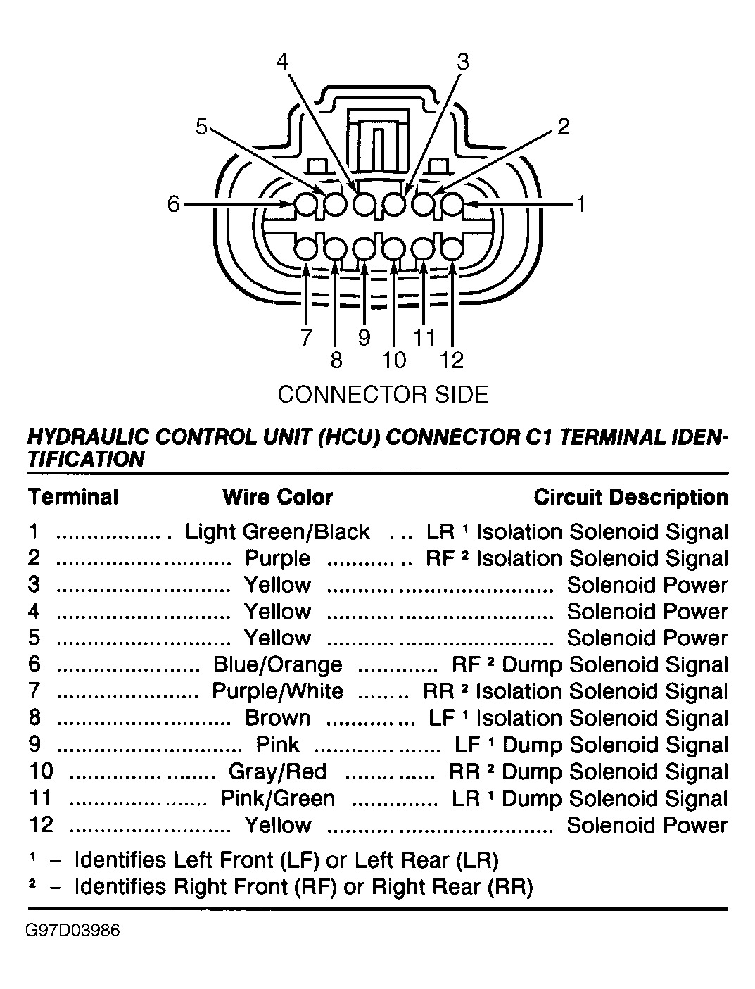Fig 2: Identifying Terminals Of HCU Connector C115