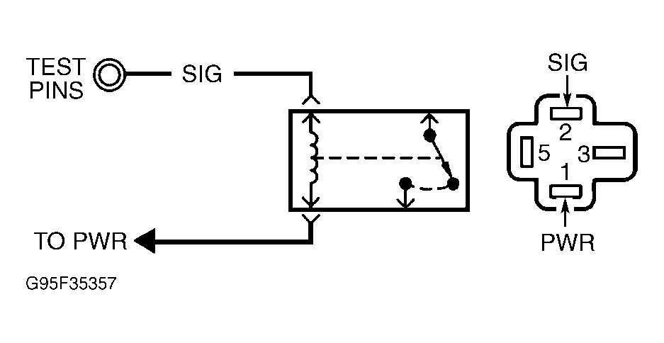 Install cooling fan relay in battery junction box. Turn ignition on. Connect a jumper wire between chassis ground and suspect SIG circuit at PCM harness connector terminal. See FAN CONTROL RELAY SIG CIRCUIT, PID & TERMINAL IDENTIFICATION table. See Figure. Relay should click and fan should operate when SIG circuit is grounded. If relay does not click and fan does not operate, replace faulty relay. If relay clicks and fan operates, replace PCM.