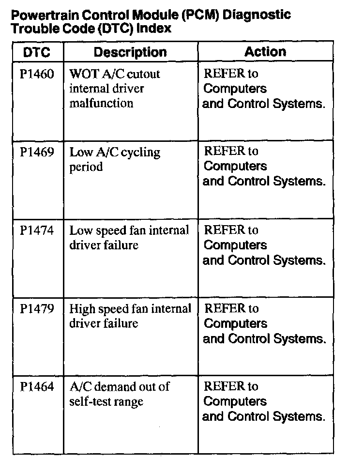 Powertrain Control Module Diagnostic Trouble Code (DTC) Index
