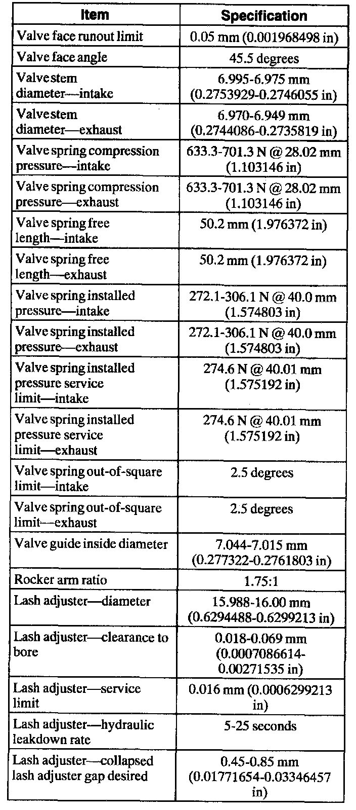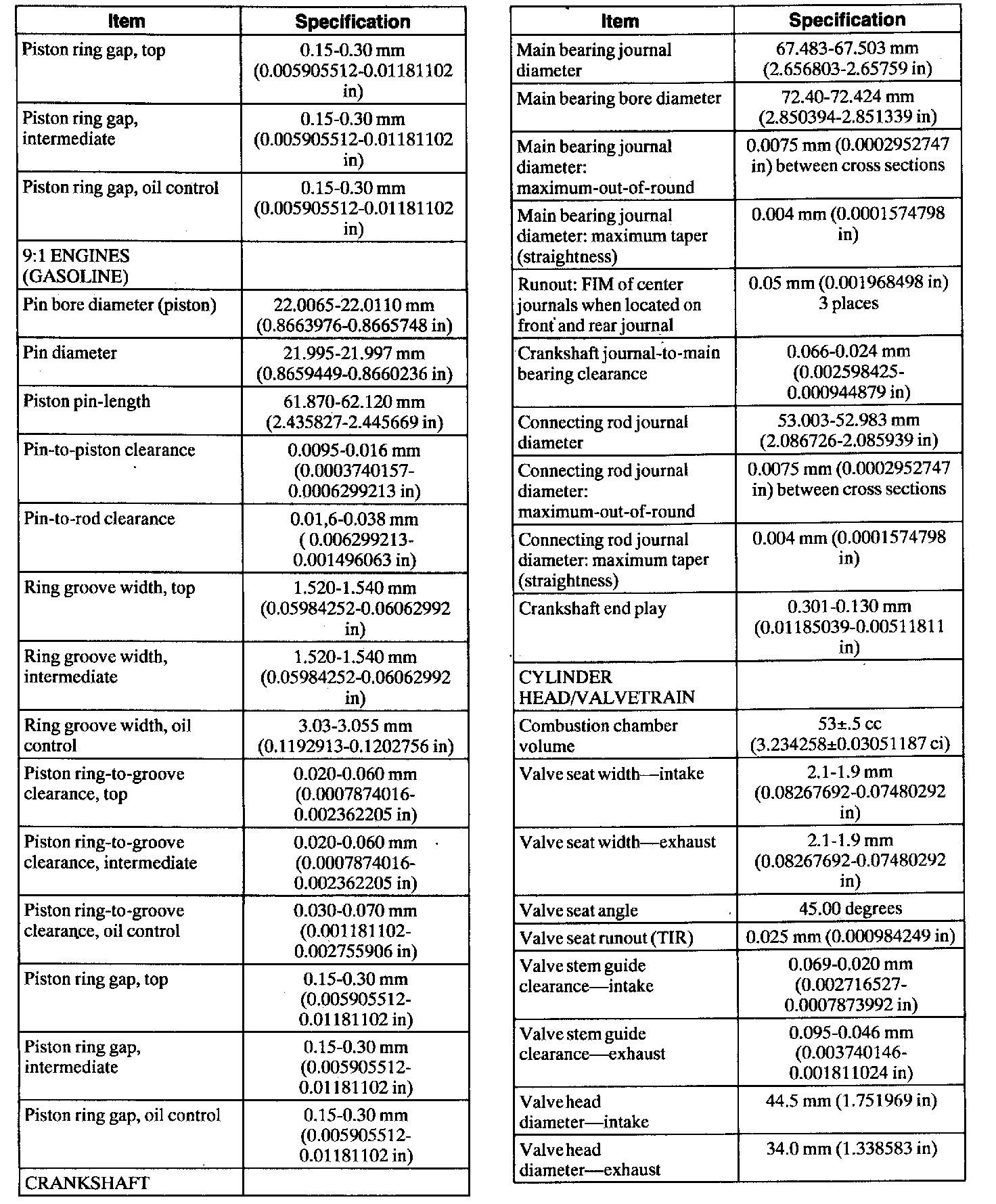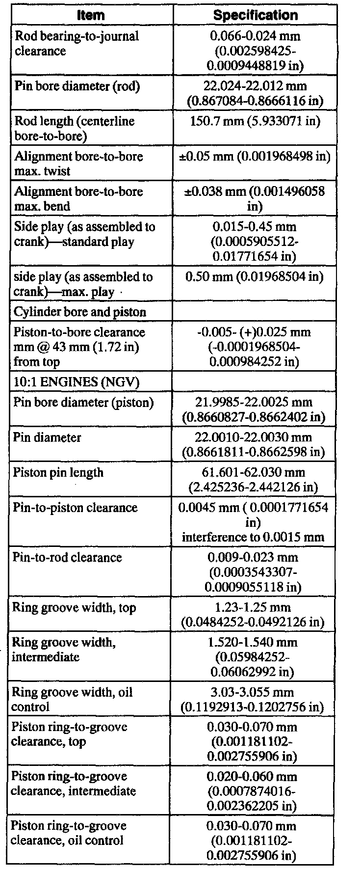 Engine Specifications