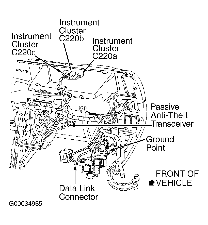 3. Disconnect instrument cluster 18-pin harness connector C220c. See Figure . Turn ignition switch to RUN position. Using NGS tester, perform data link diagnostic test. See DATA LINK DIAGNOSTIC TEST  under SELF-DIAGNOSTIC SYSTEM. If NGS tester does not display SYSTEM PASSED, go to next step. If NGS tester displays SYSTEM PASSED, go to step  7 .