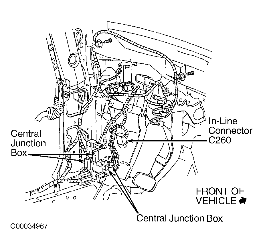 6. Turn ignition switch to LOCK position. Connect in-line harness connector C134. Disconnect in-line 34-pin harness connector C260. In-line harness connector C260 is located in left side kick panel. See Figure . Turn ignition switch to RUN position. Using NGS tester, perform data link diagnostic test. See DATA LINK DIAGNOSTIC TEST  under SELF-DIAGNOSTIC SYSTEM. If NGS tester does not display SYSTEM PASSED, repair short in communication circuit between in-line harness connector C134, IC module and DLC. Repeat data link diagnostic test. See DATA LINK DIAGNOSTIC TEST  under SELF-DIAGNOSTIC SYSTEM. If NGS tester displays SYSTEM PASSED, repair short in communication circuit between in-line harness connector C134 and in-line harness connector C260. Repeat data link diagnostic test. See DATA LINK DIAGNOSTIC TEST  under SELF-DIAGNOSTIC SYSTEM.