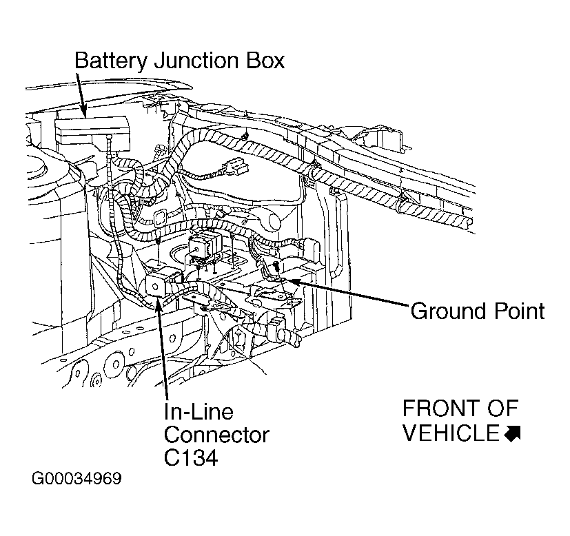 5. Turn ignition switch to LOCK position. Connect PCM harness connector C175. Disconnect in-line 42-pin harness connector C134. In-line harness connector C134 is located in left front of engine compartment, behind left headlight. See Figure . Turn ignition switch to RUN position. Using NGS tester, perform data link diagnostic test. See DATA LINK DIAGNOSTIC TEST  under SELF-DIAGNOSTIC SYSTEM. If NGS tester does not display SYSTEM PASSED, go to next step. If NGS tester displays SYSTEM PASSED, repair short in communication circuit(s) between PCM and in-line harness connector. Repeat data link diagnostic test. See DATA LINK DIAGNOSTIC TEST  under SELF-DIAGNOSTIC SYSTEM.