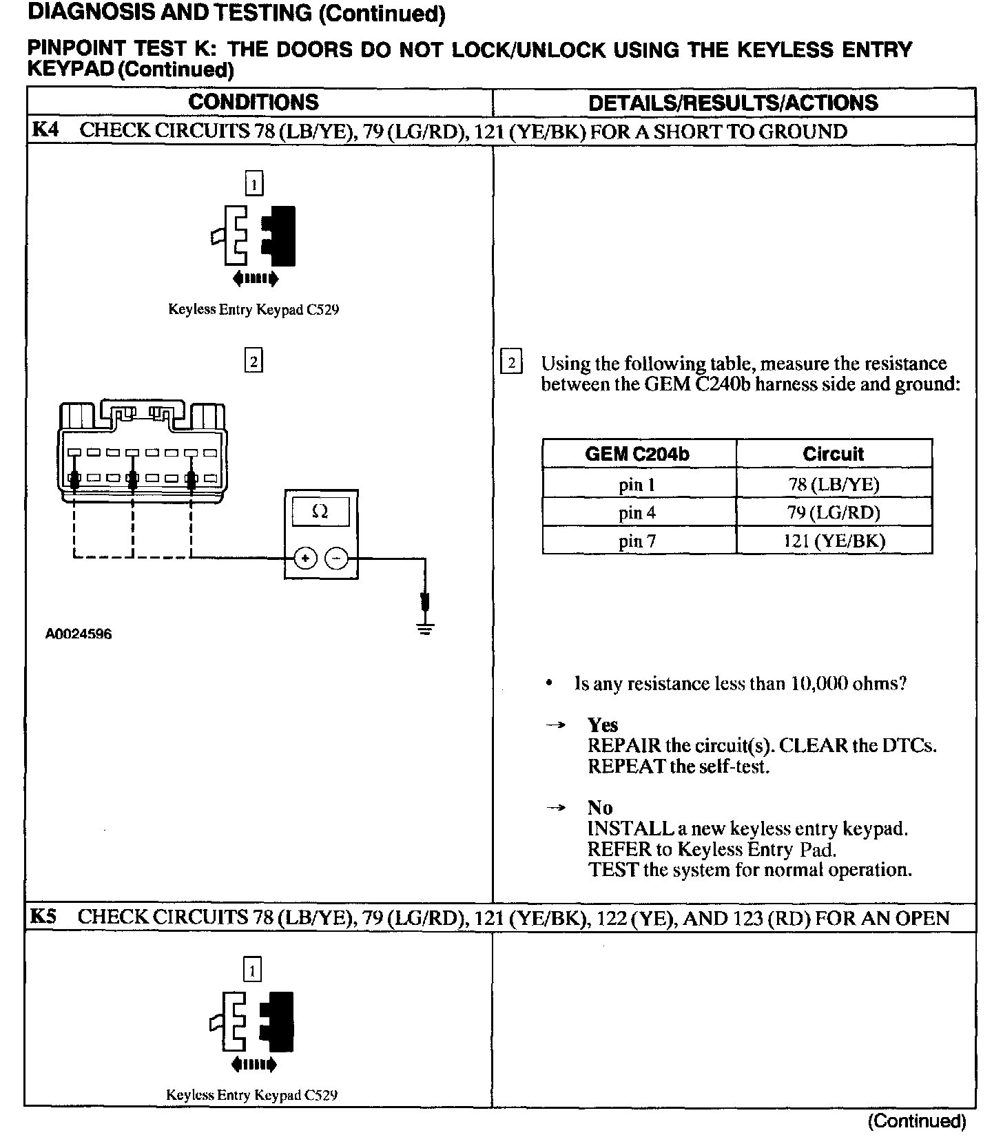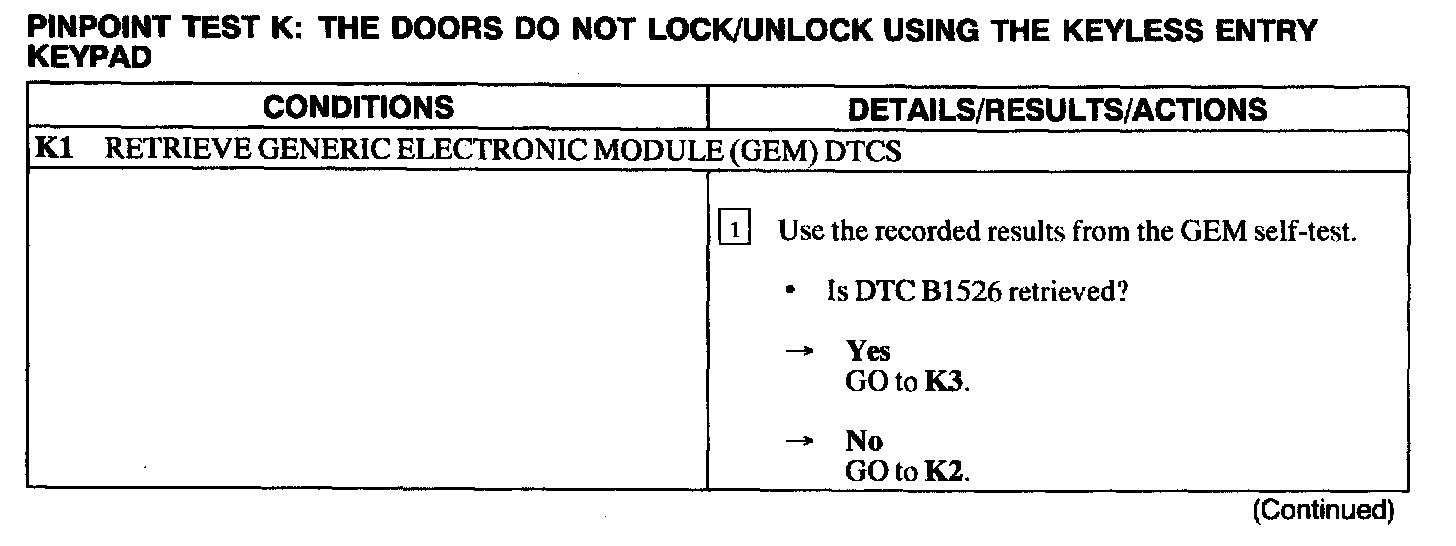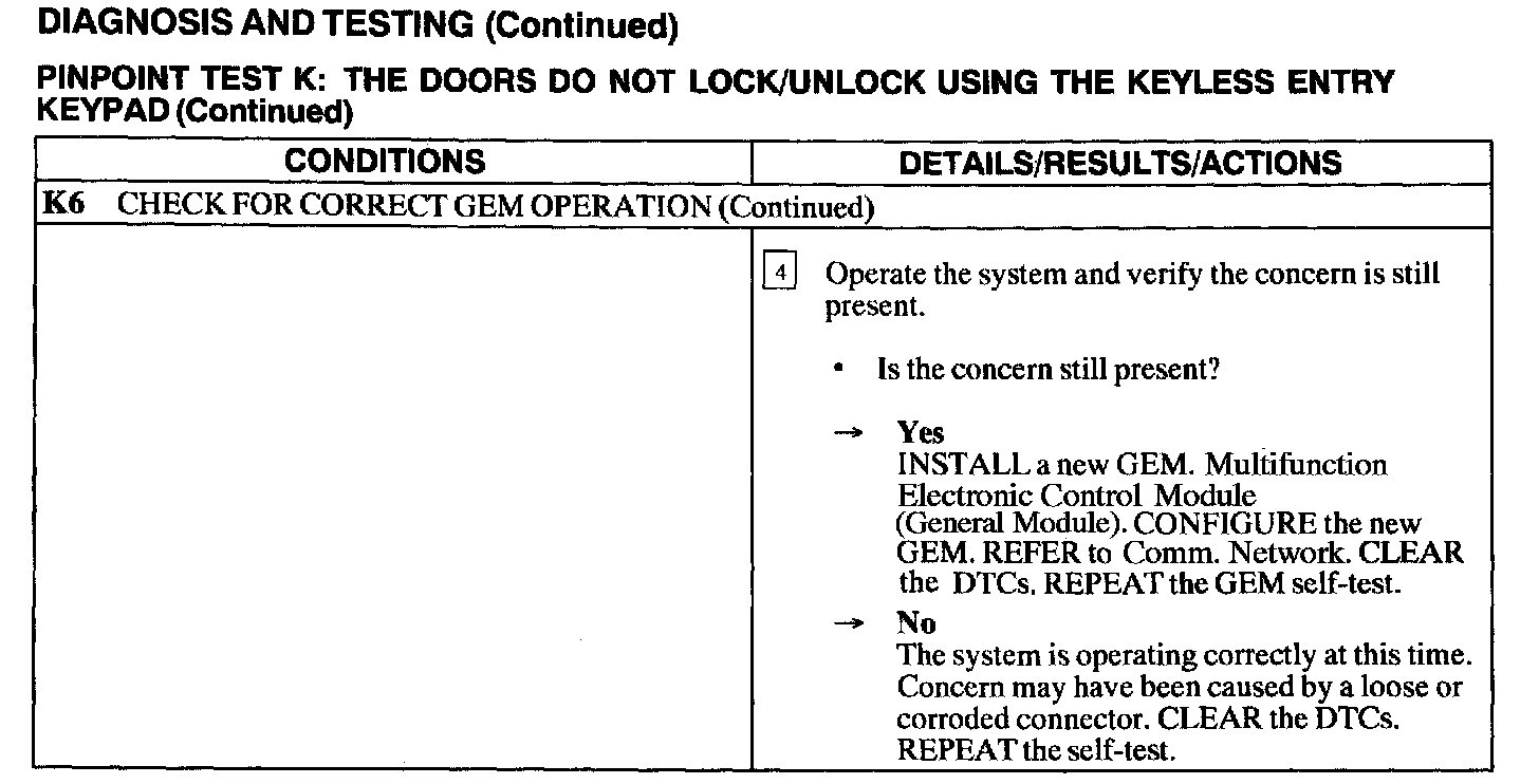 Test K: Doors Do Not Lock/Unlock Using The Keyless Entry Keypad