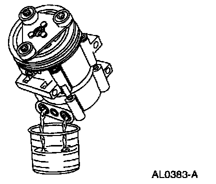 CAUTION: During normal A/C operation, oil is circulated through the system with the refrigerant, and a small amount is retained in each component. If certain components of the system are removed for new installation, some of the refrigerant oil will go with the component. To maintain the original total oil charge, it is necessary to compensate for the oil lost by adding oil to the system with the new part.1. Rotate the A/C compressor shaft six to eight revolutions while collecting oil in a clean measuring device.