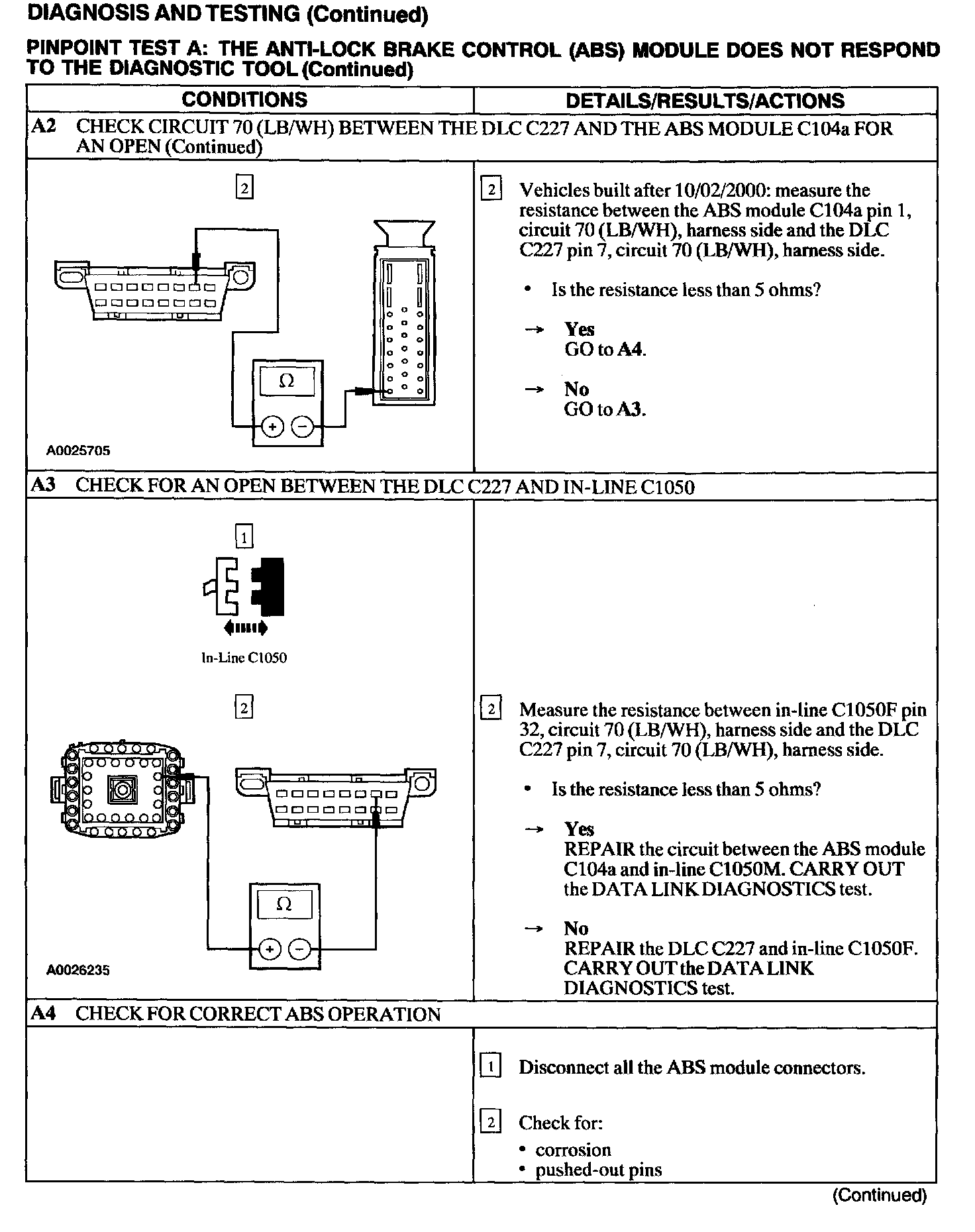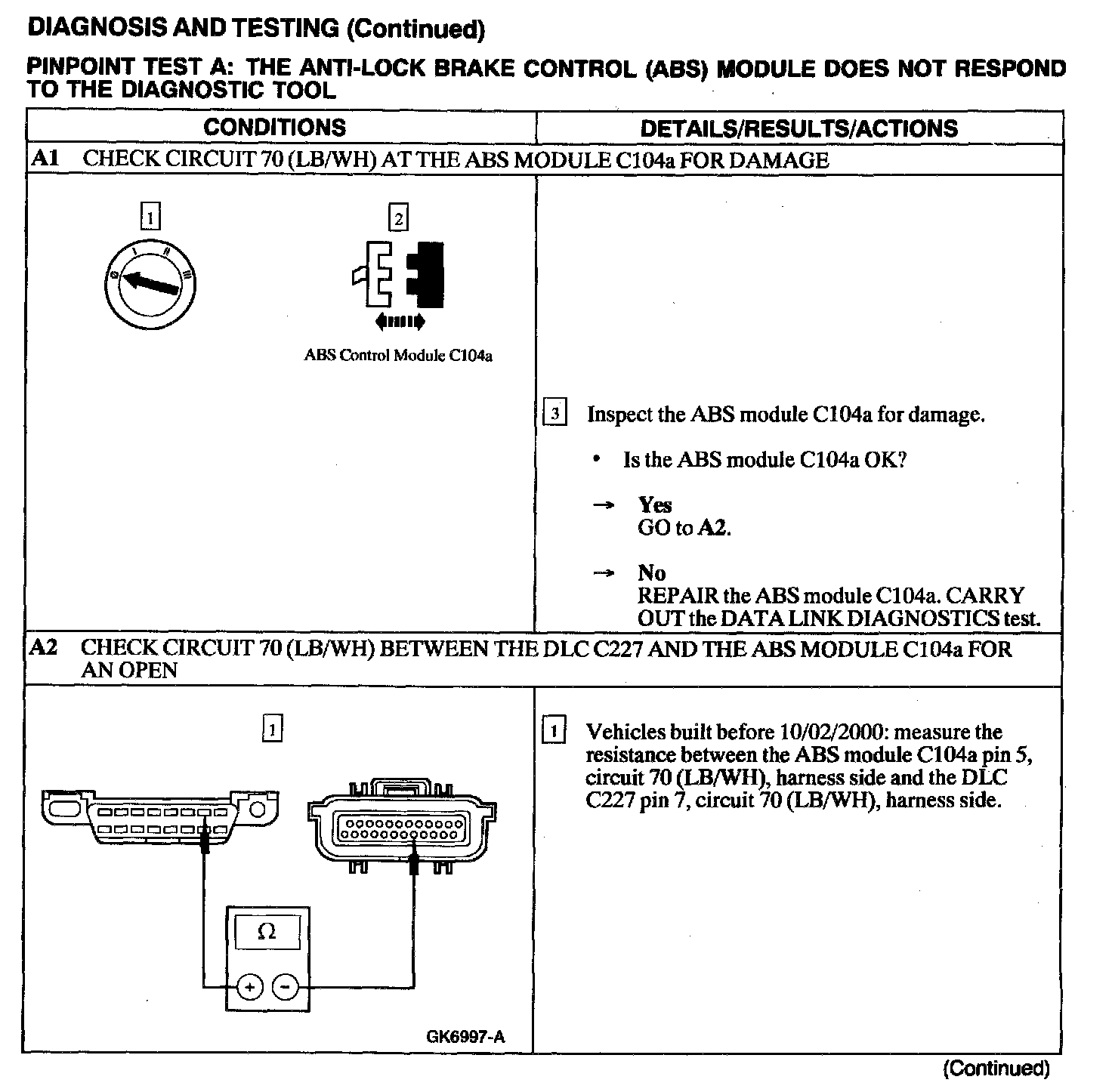 Test A: ABS Control Module Does Not Respond to the Scan Tool