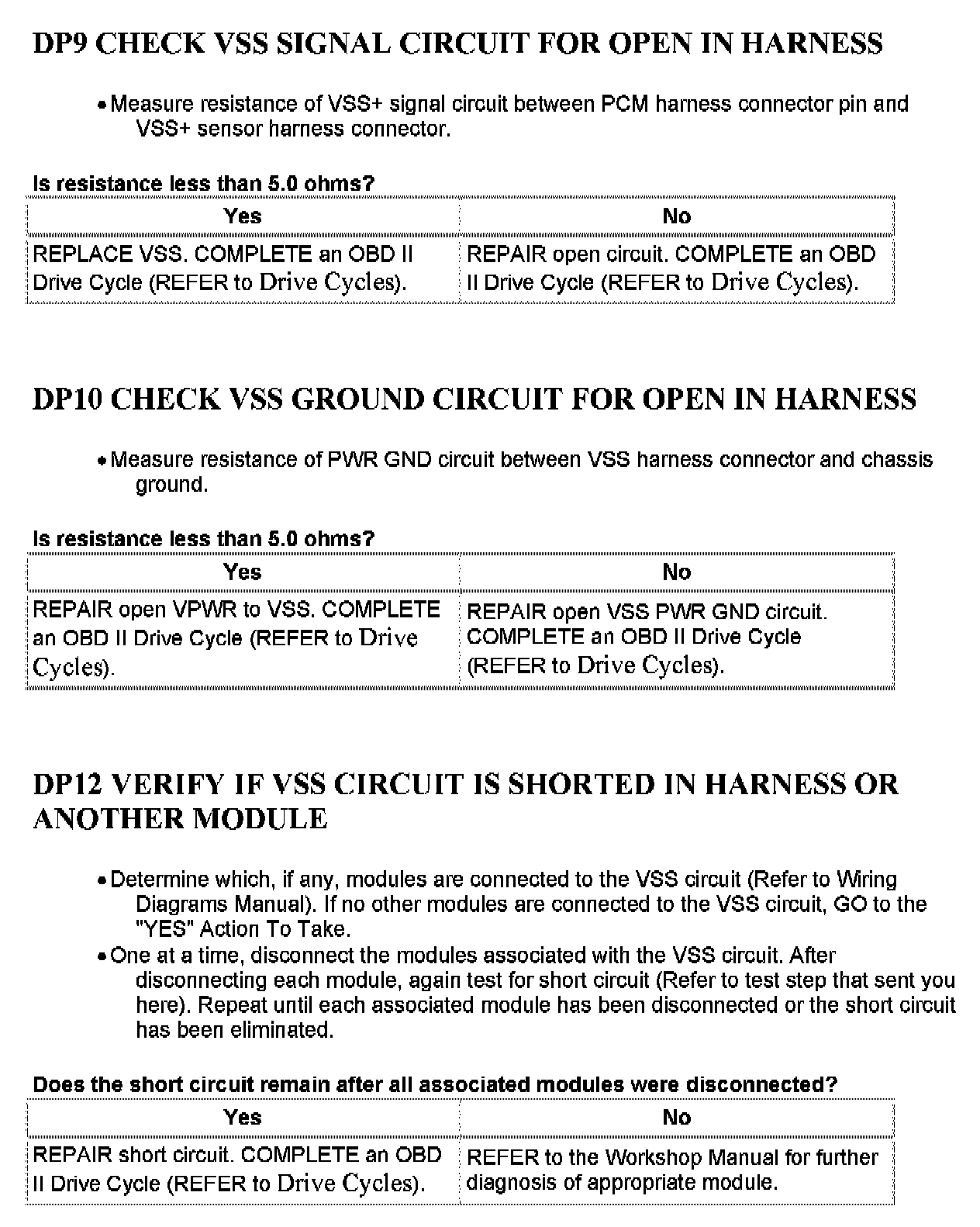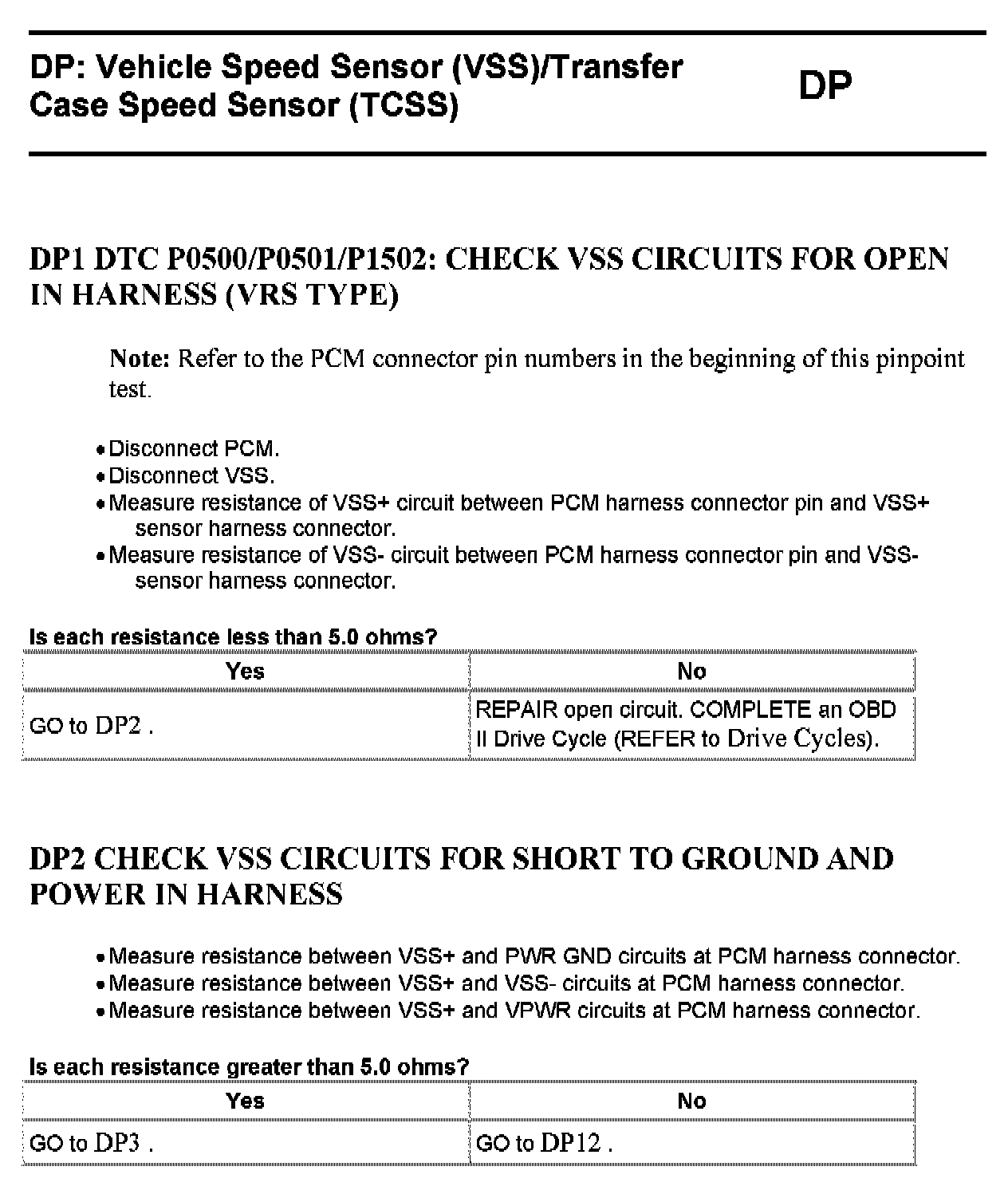 Tests DP: Vehicle Speed Sensor/Transfer Case Speed Sensor
