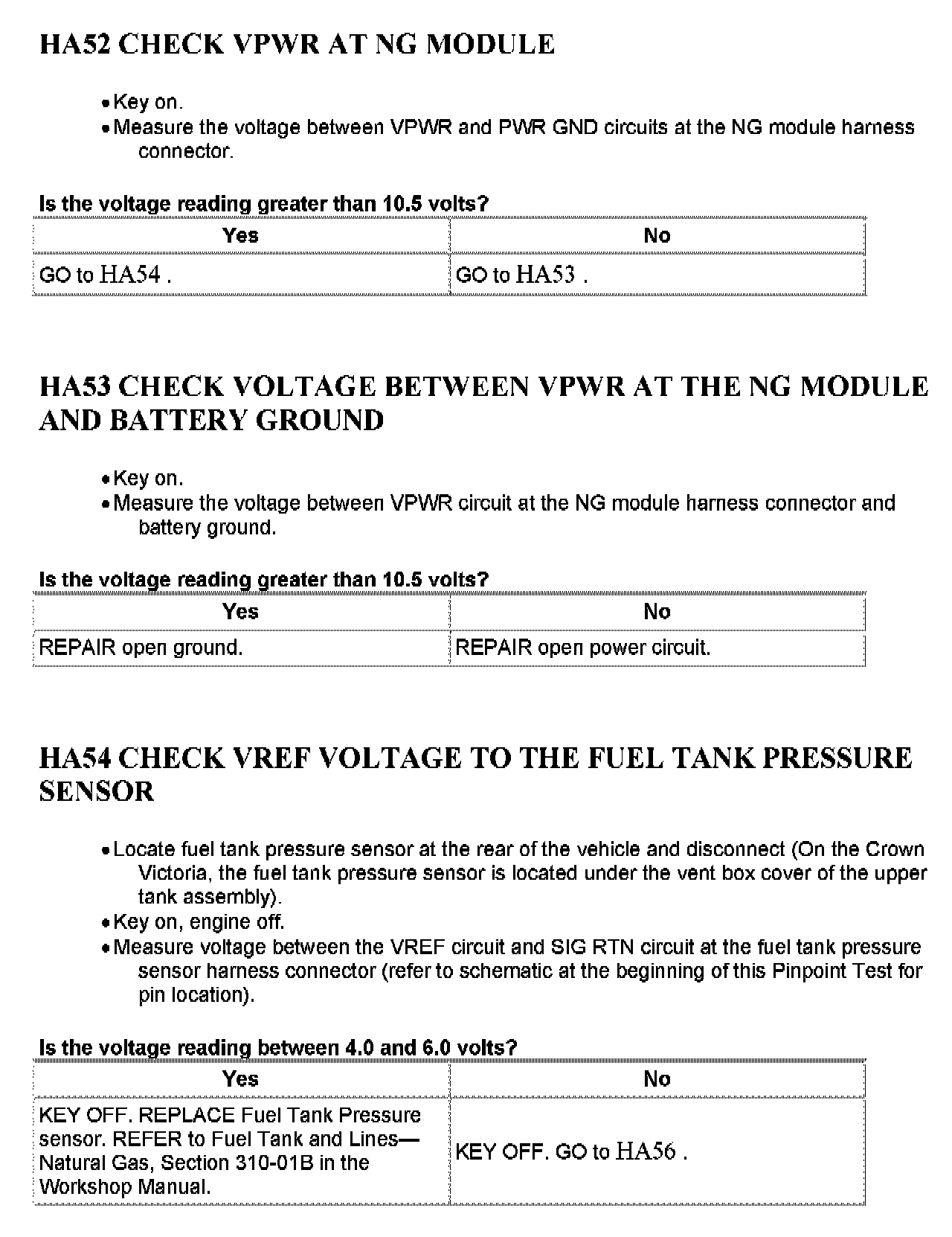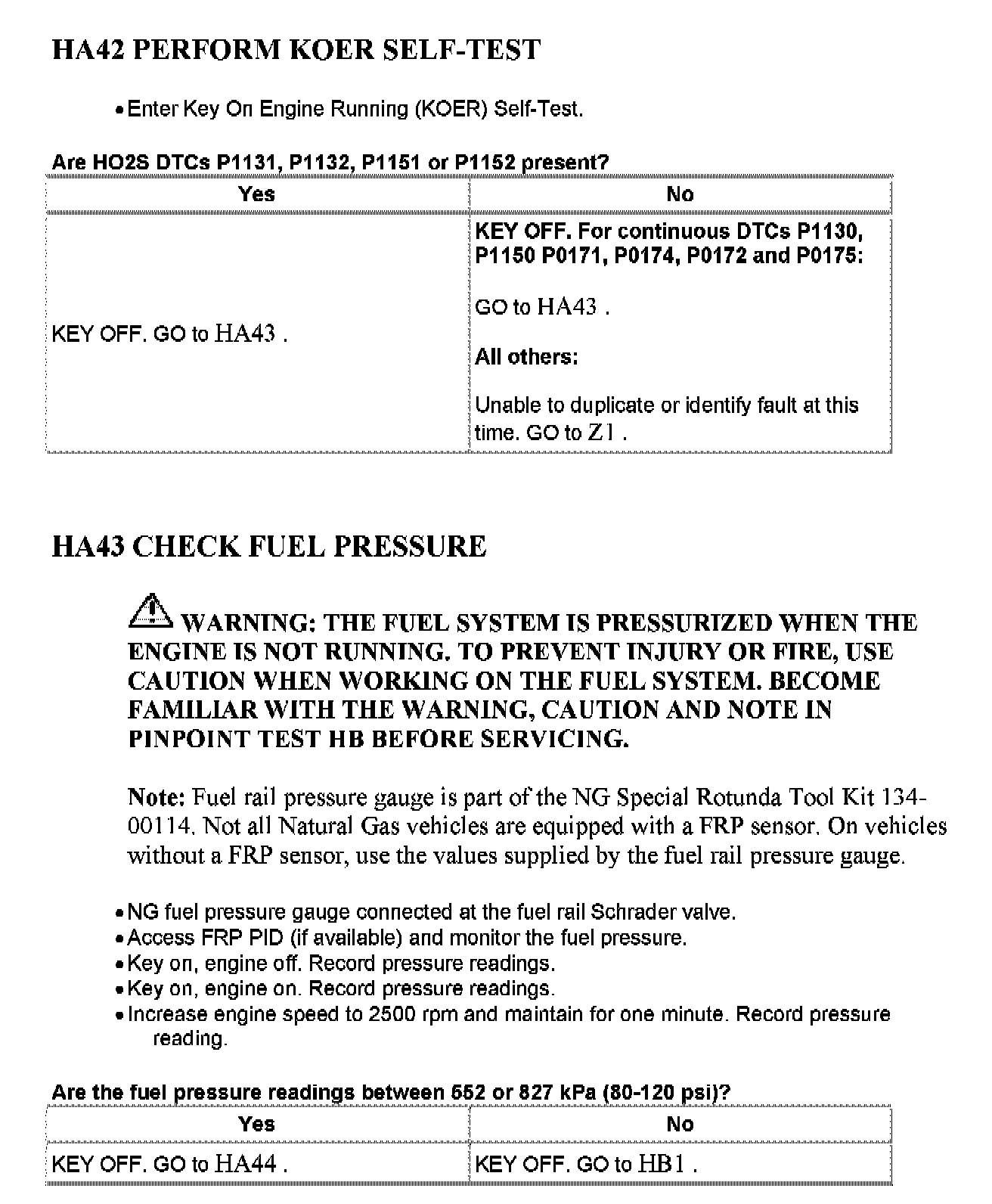 Home >> Ford >> 2001 >> Excursion 2WD V10-6.8L VIN S >> Repair and Diagnosis >> Powertrain Management >> Computers and Control Systems >> Testing and Inspection >> Pinpoint Tests >> Tests HA: Natural Gas Fuel Control