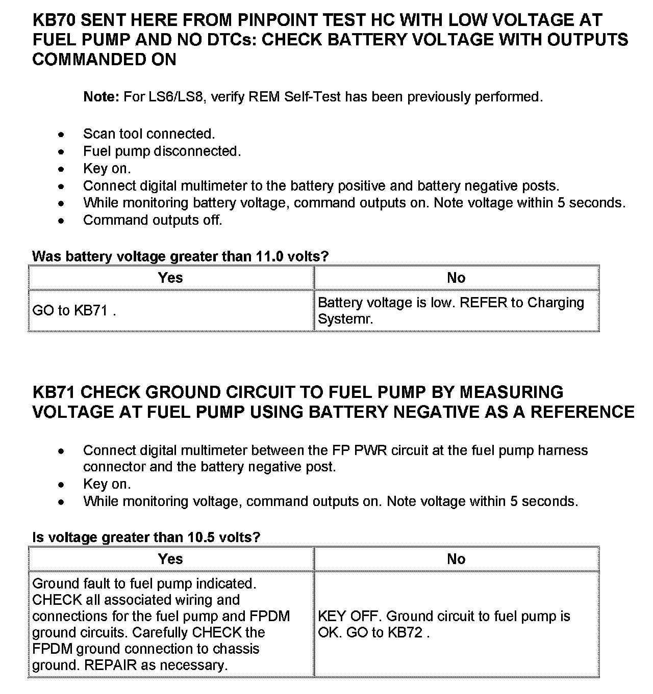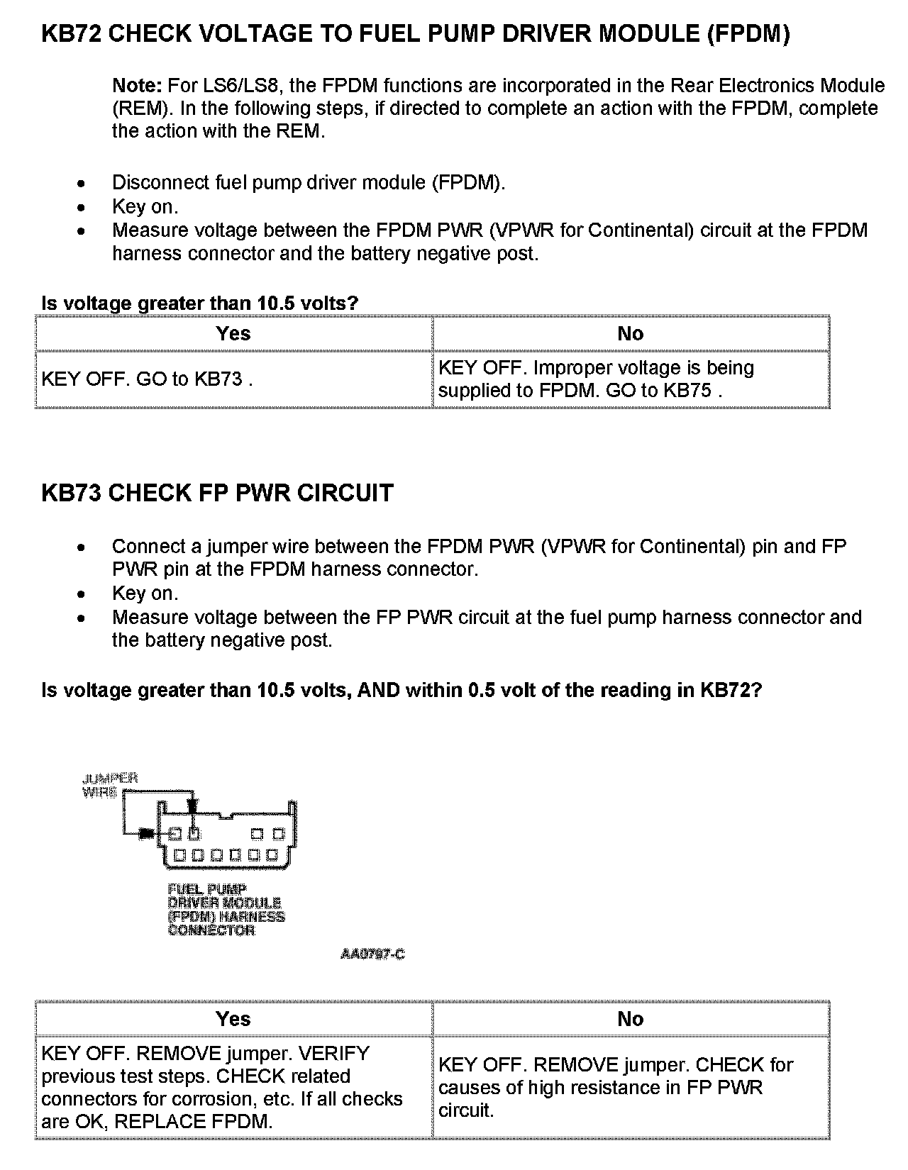 Tests KB: Fuel Pump Driver Module (FPDM)