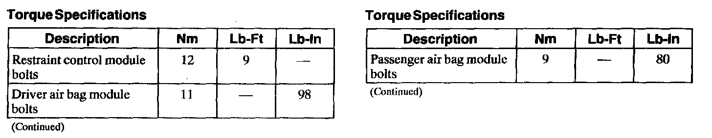 Torque Specifications (Part 2):