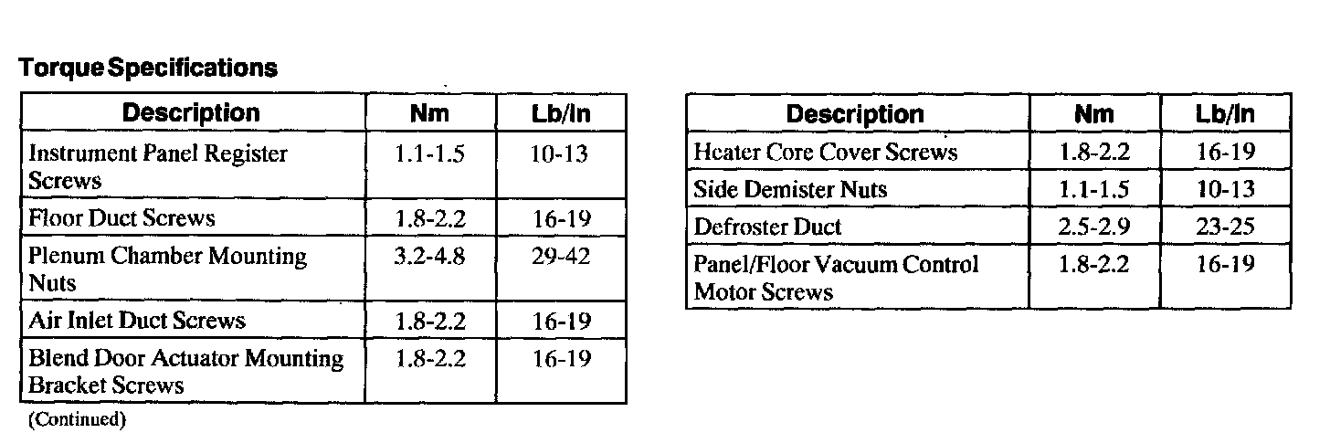 Torque Specification