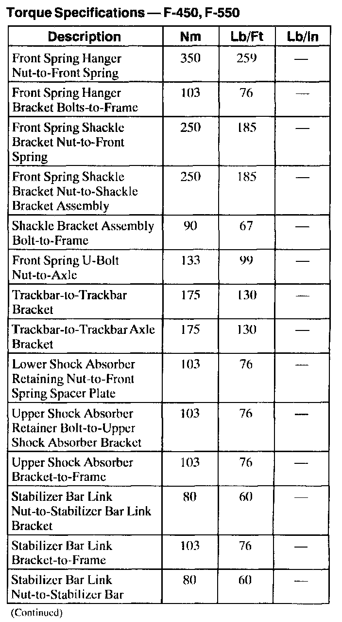 Torque Specifications - F-450, F-550