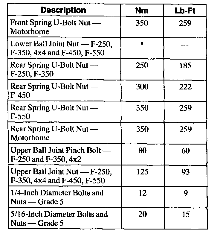 Torque Specifications
