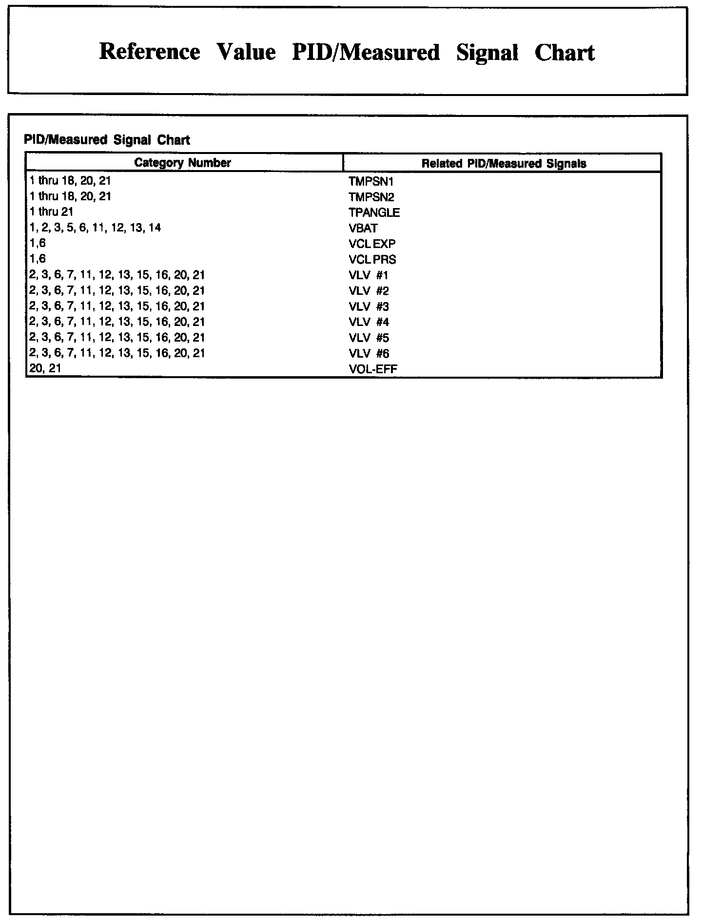 PID/Measured Signal Chart (Part 1 Of 2):