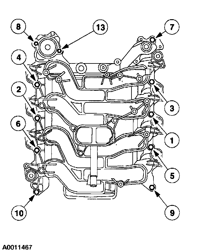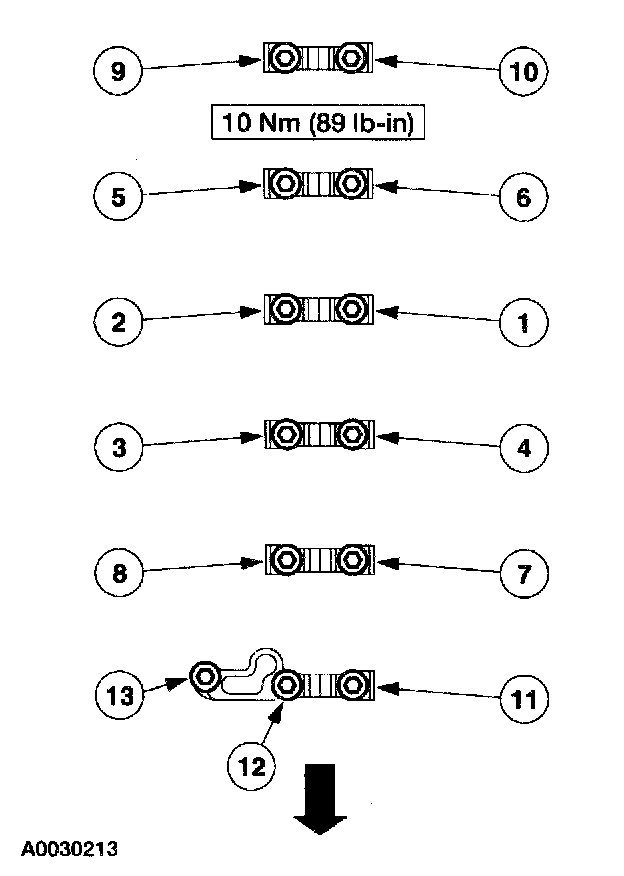 Tighten the bolts in the sequence shown to 10 Nm (89 lb/in).