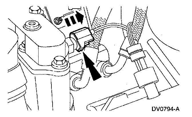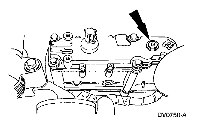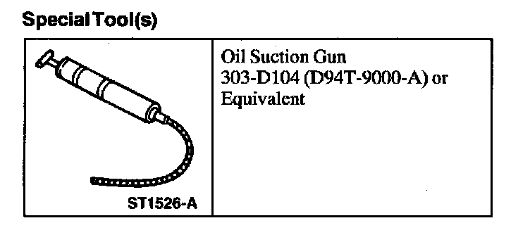 2. Remove the plug. Using special tool 303-D104 (D94T-9000-A) draw the oil from the high-pressure oil pump reservoir.