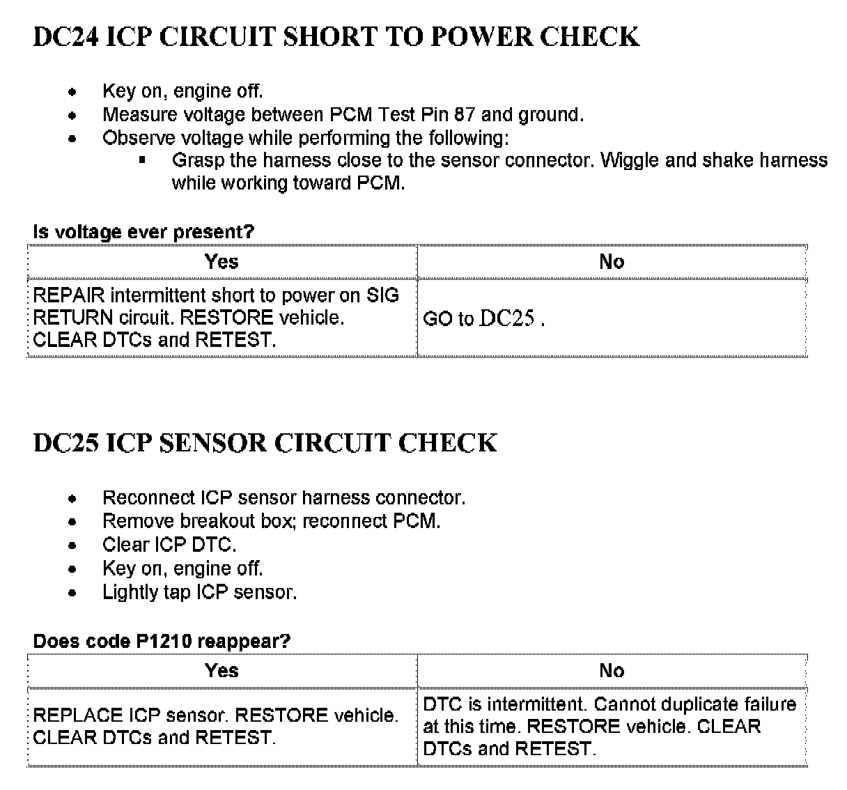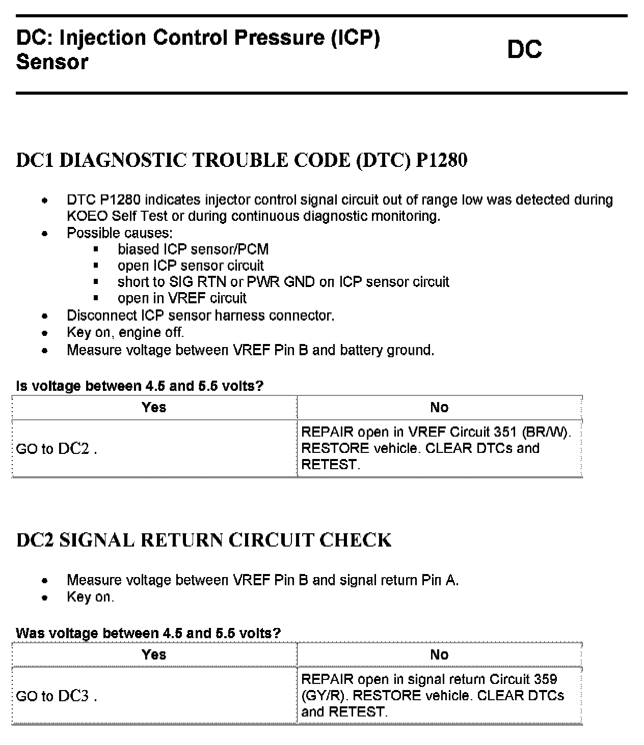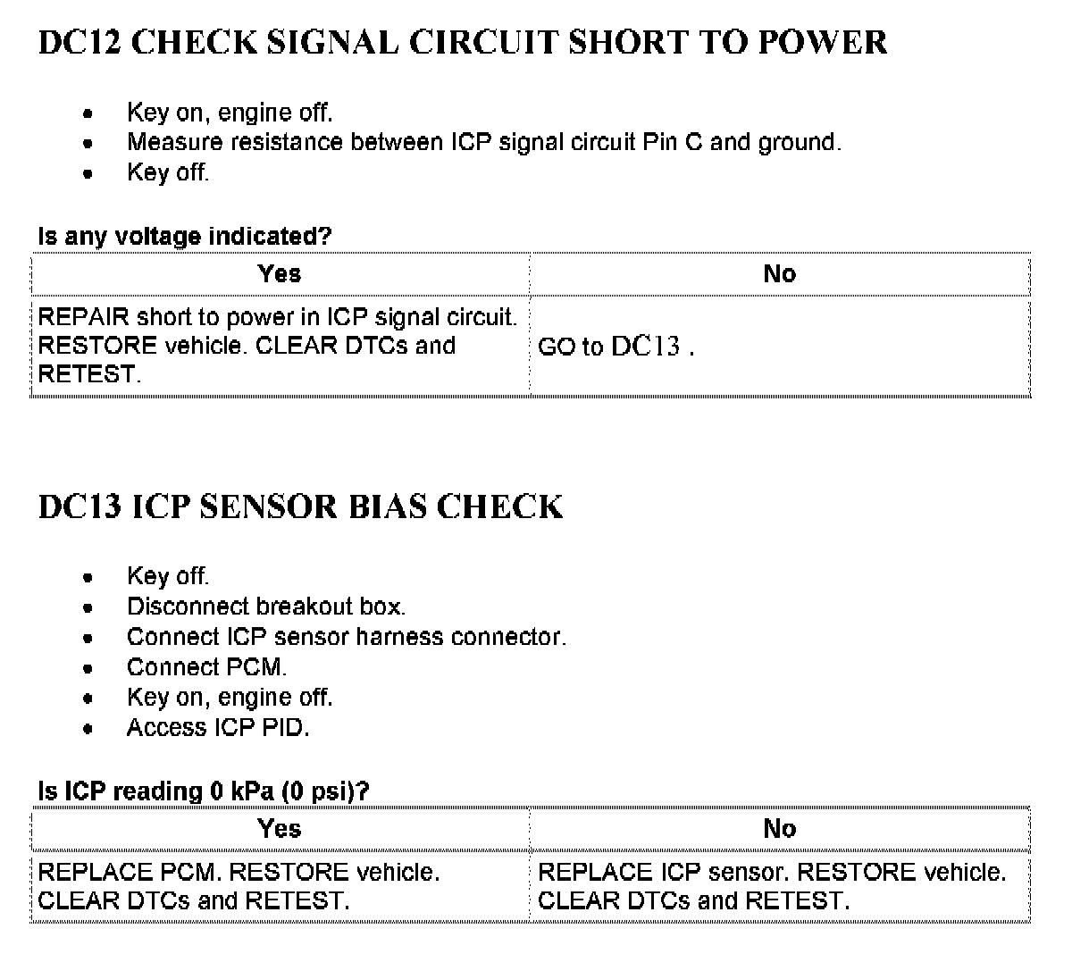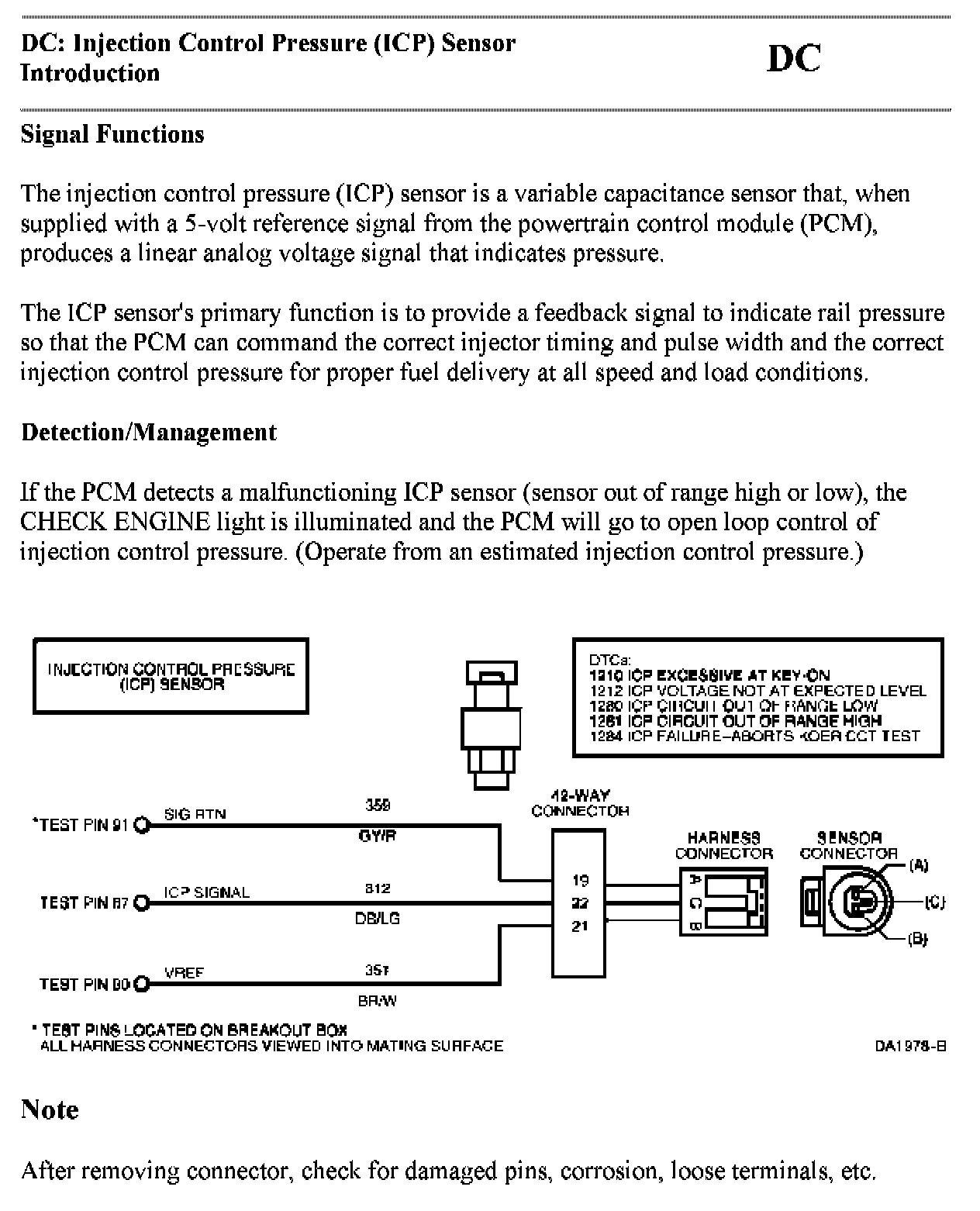 Tests DC: Injection Control Pressure (ICP) Sensor