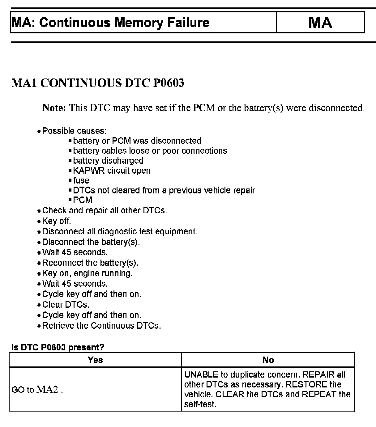 Tests MA: Continuous Memory Failure