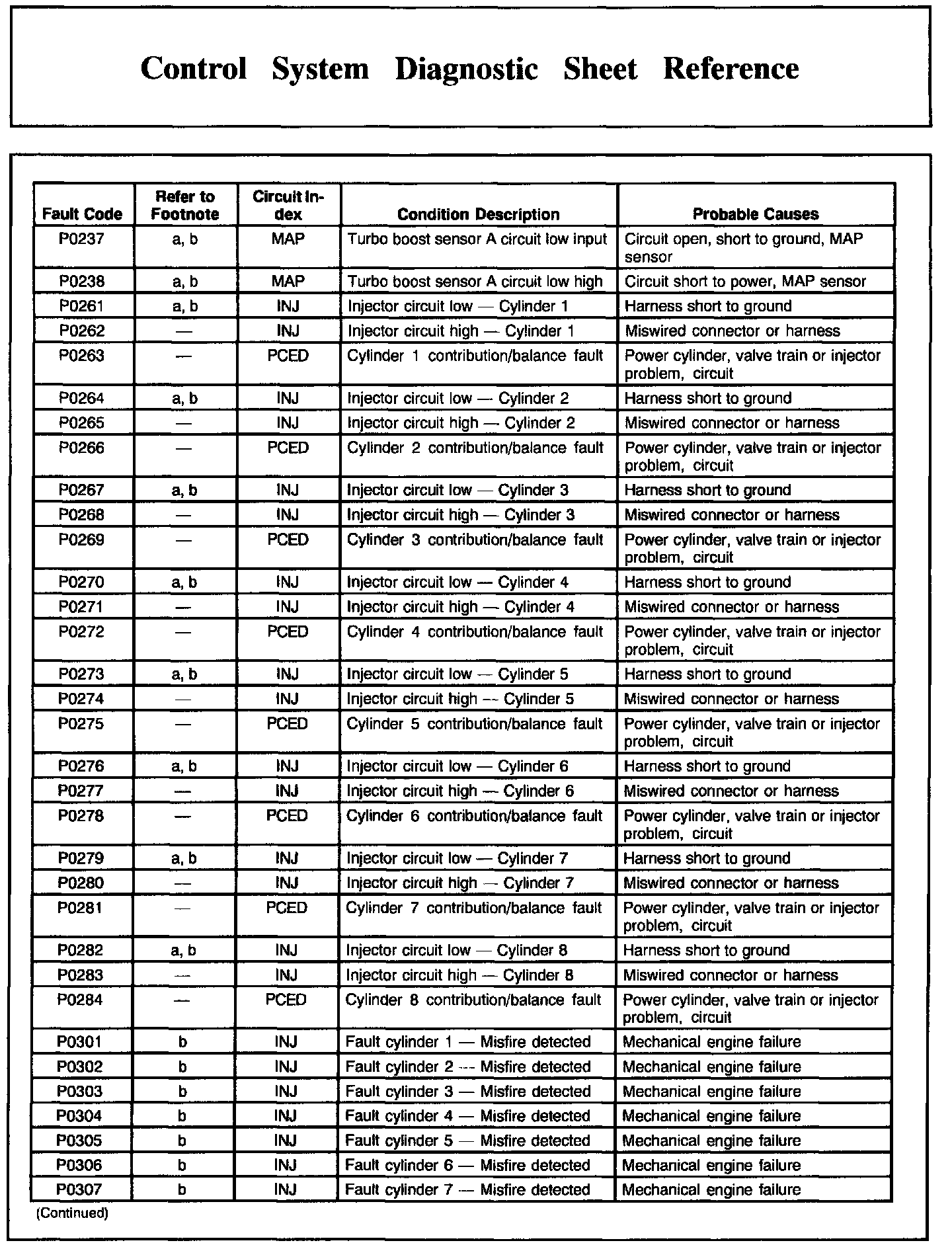 DTC Condition/Cause Chart, Part 2: