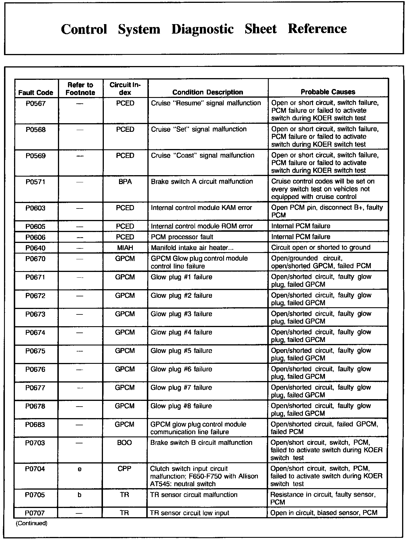 DTC Condition/Cause Chart, Part 7: