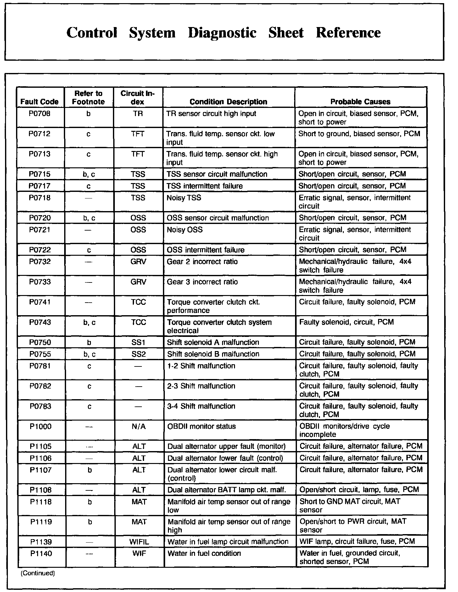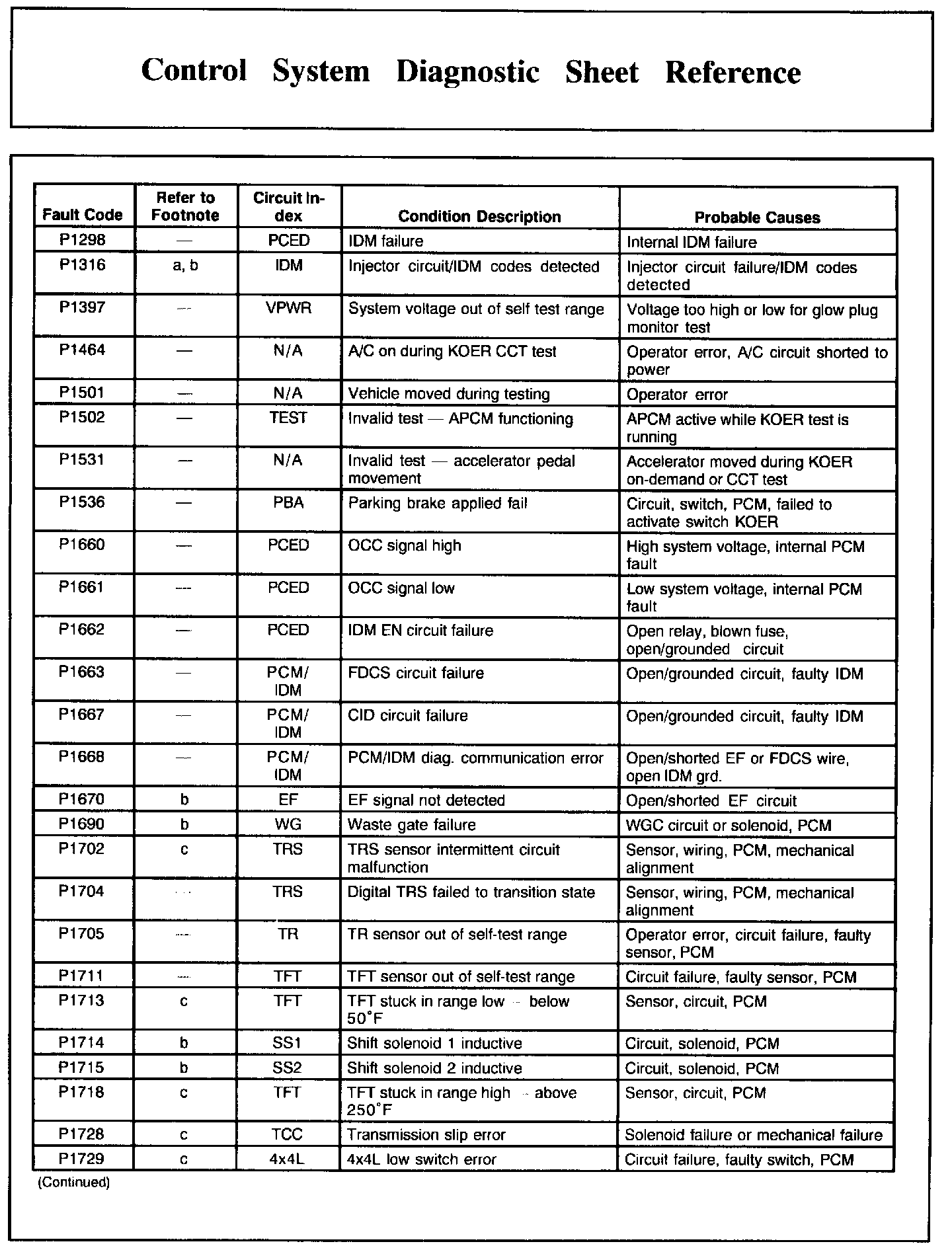 DTC Condition/Cause Chart, Part 1: