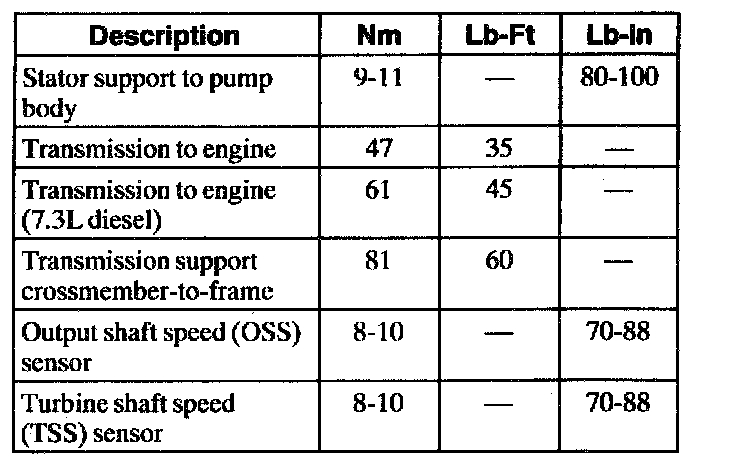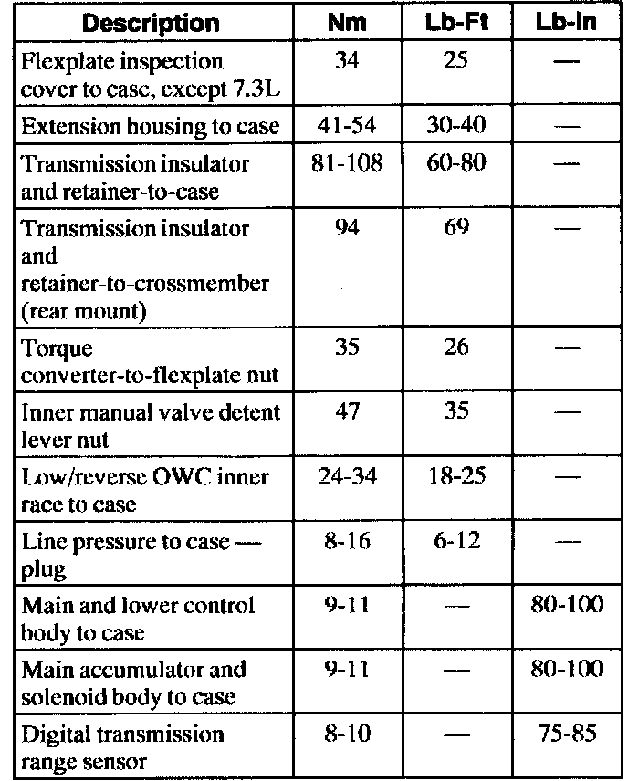 Torque Specifications