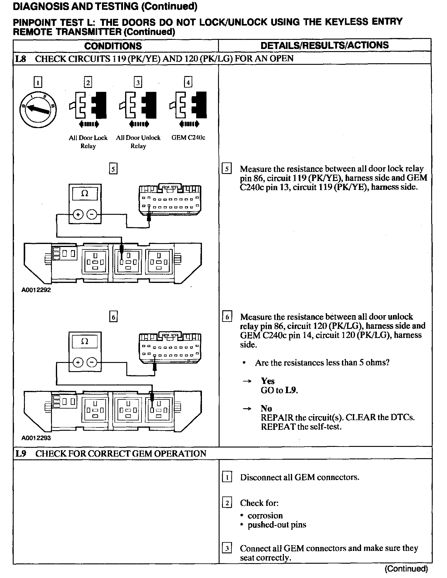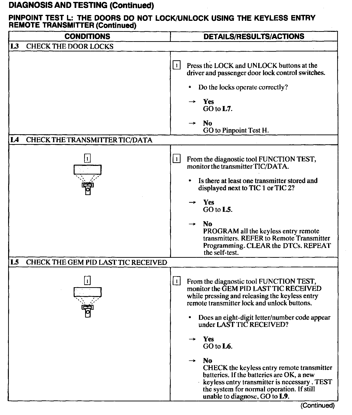 Test L: Doors Do Not Lock/Unlock Using the Keyless Entry Remote Transmitter