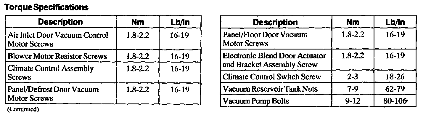 Torque Specifications:
