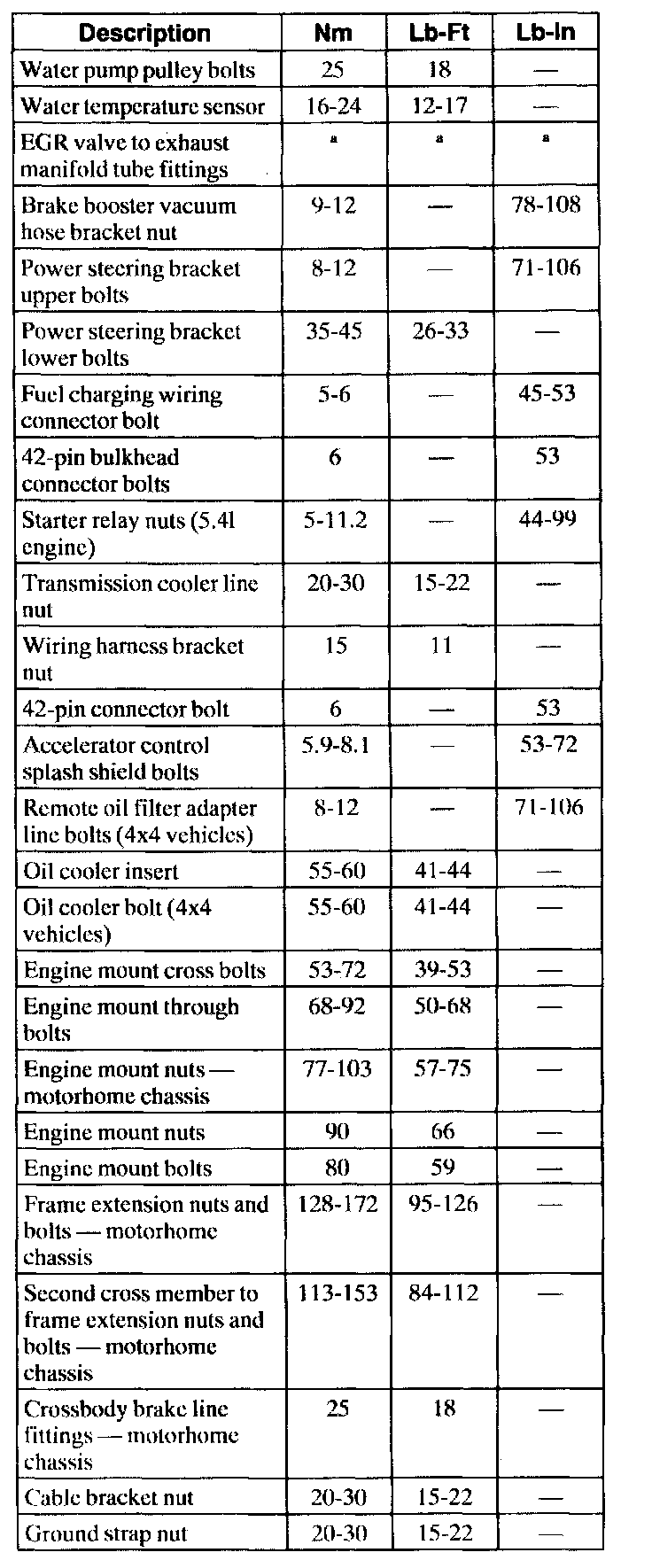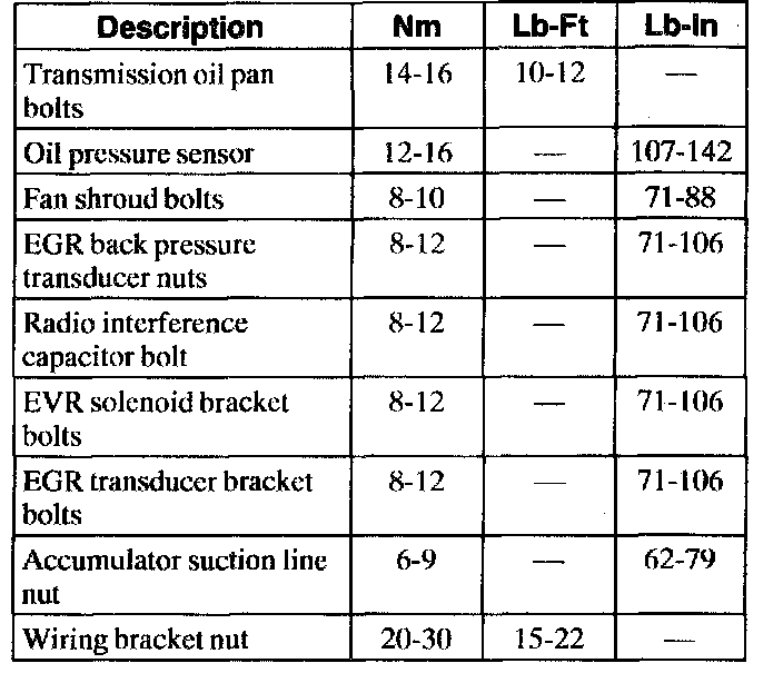 Torque Specifications