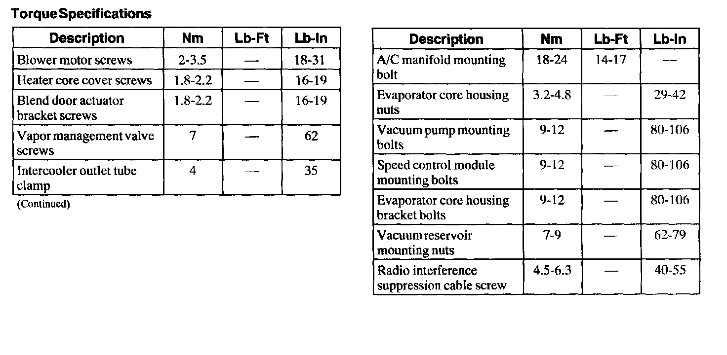 Torque Specification