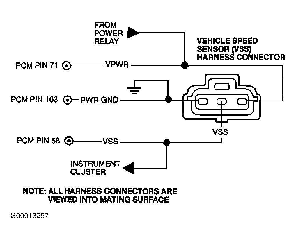 Fig 1: Identifying VSS Circuits & Connector Terminals (Except Cougar, Escape & Pickup 4WD With Manual Shift-On-The-Fly)Courtesy of FORD MOTOR CO.