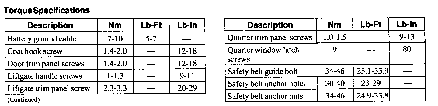 Torque Specifications: