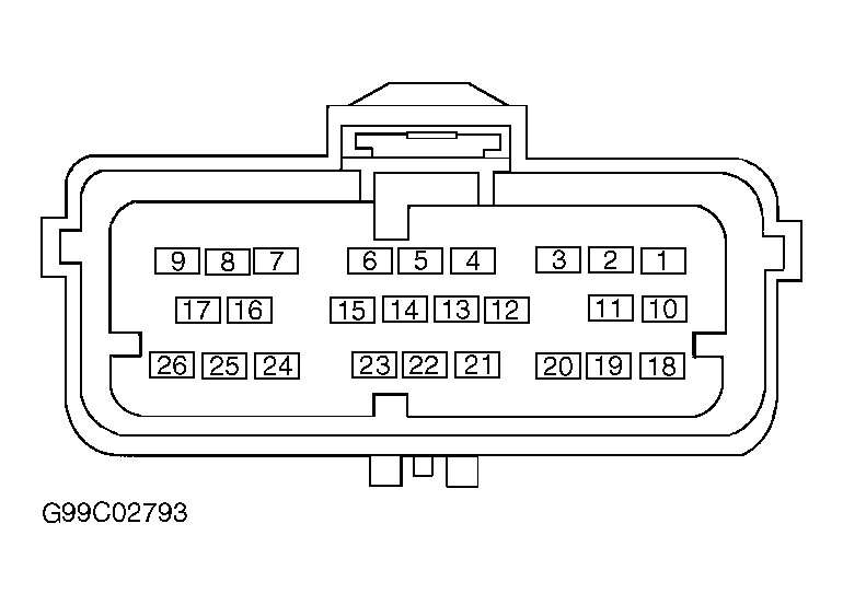 AIR BAG RESTRAINT SYSTEMS article. Disconnect Restraint Control Module (RCM) 26-pin harness connector C232. See Figure. Inspect RCM connector for physical damage, bent terminals or corrosion. If connector is okay, go to next step. If connector is damaged, repair connector as necessary and recheck system operation.