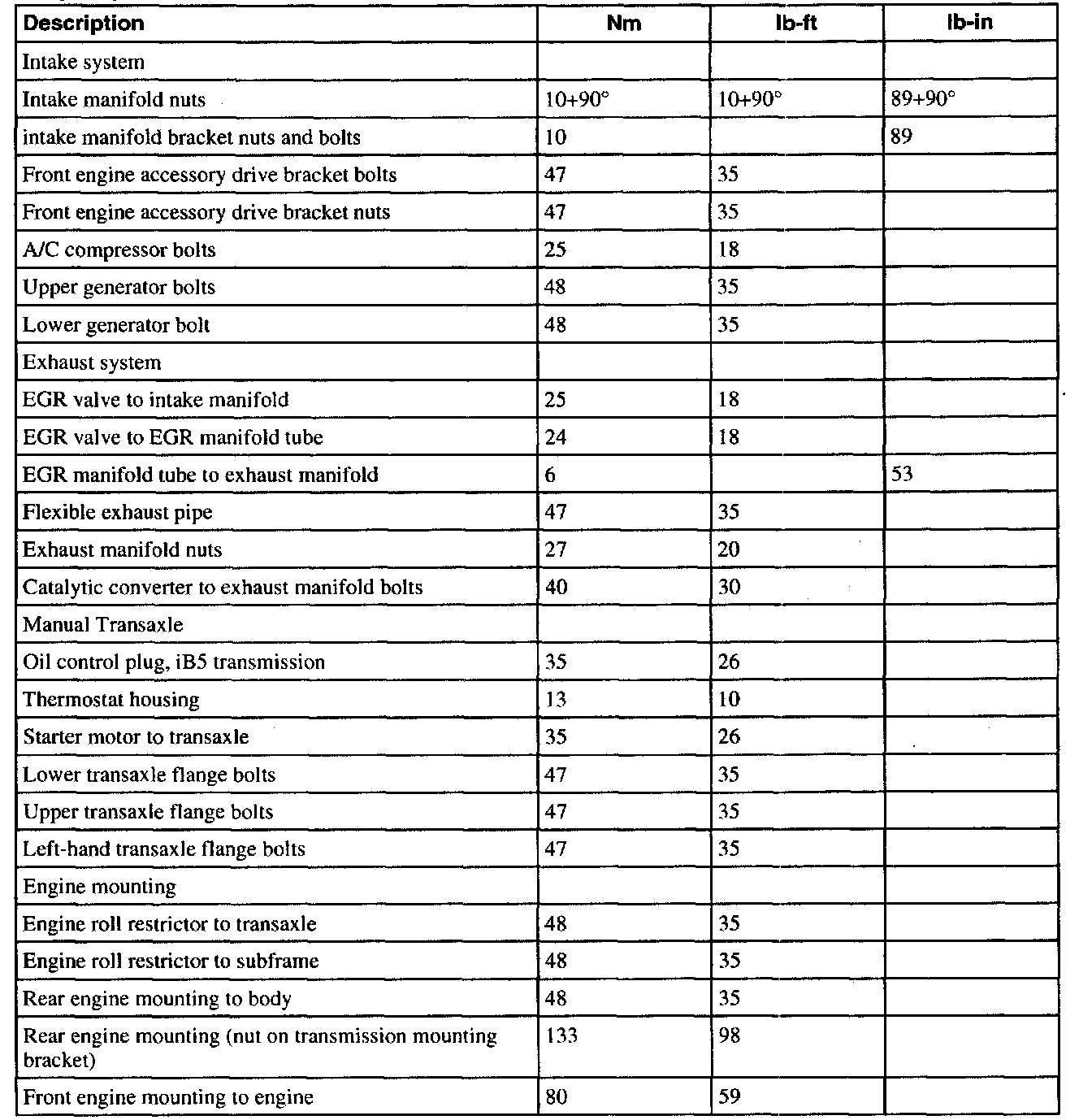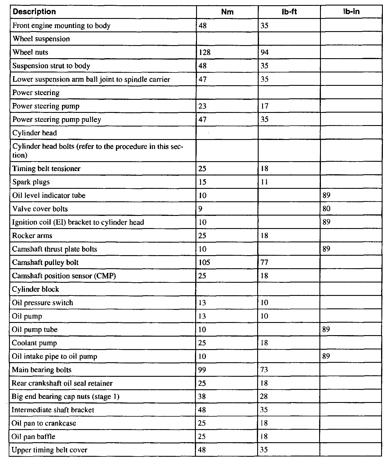 Torque Specifications